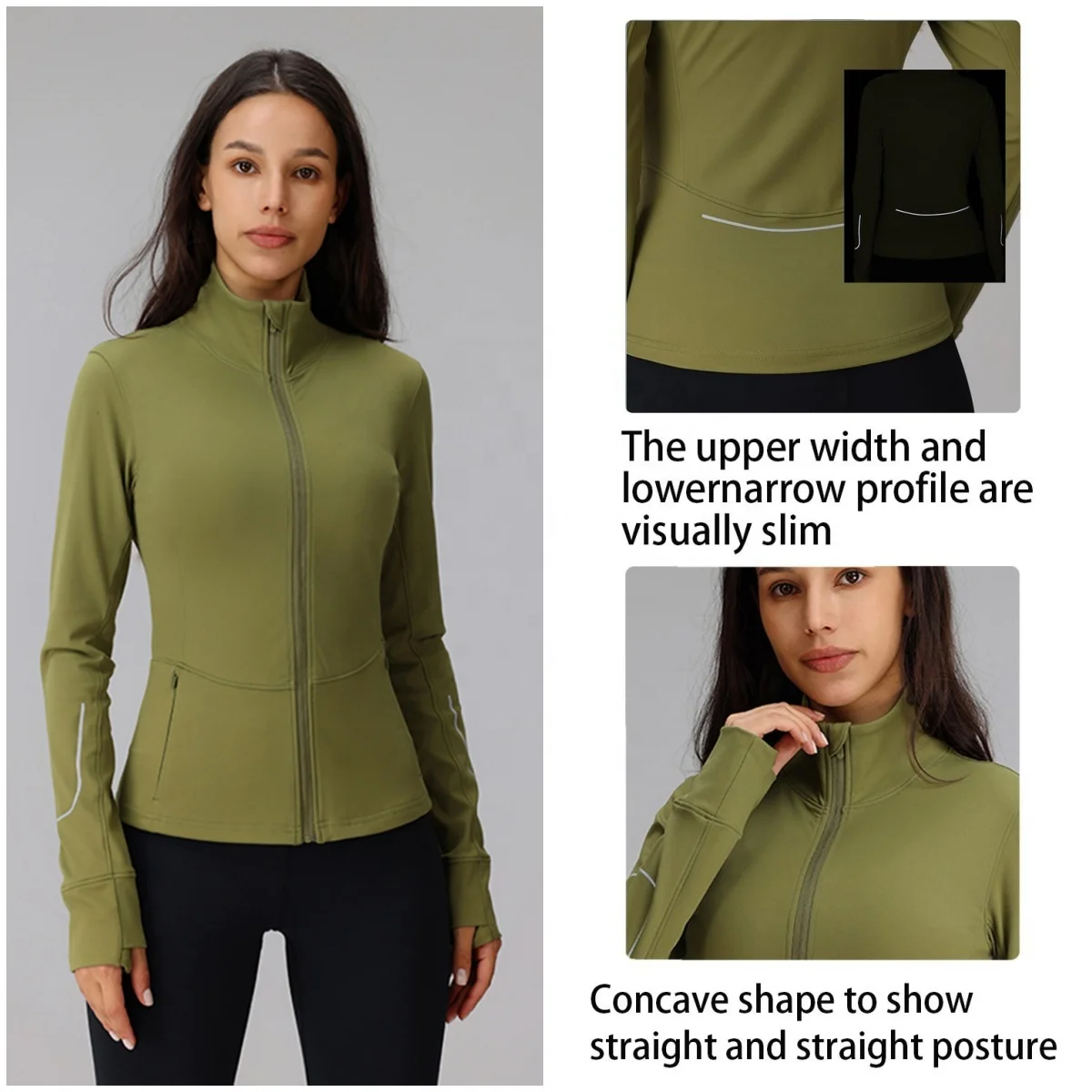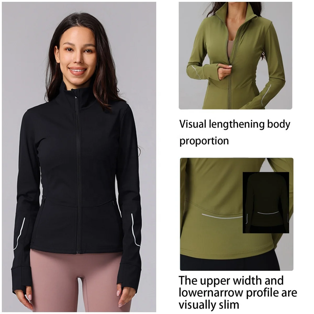 Fall Spring Reflective Design Custom Fitness Wear Yoga Women's Long Sleeve Seamless Workout Top Female Training Sports Jackets