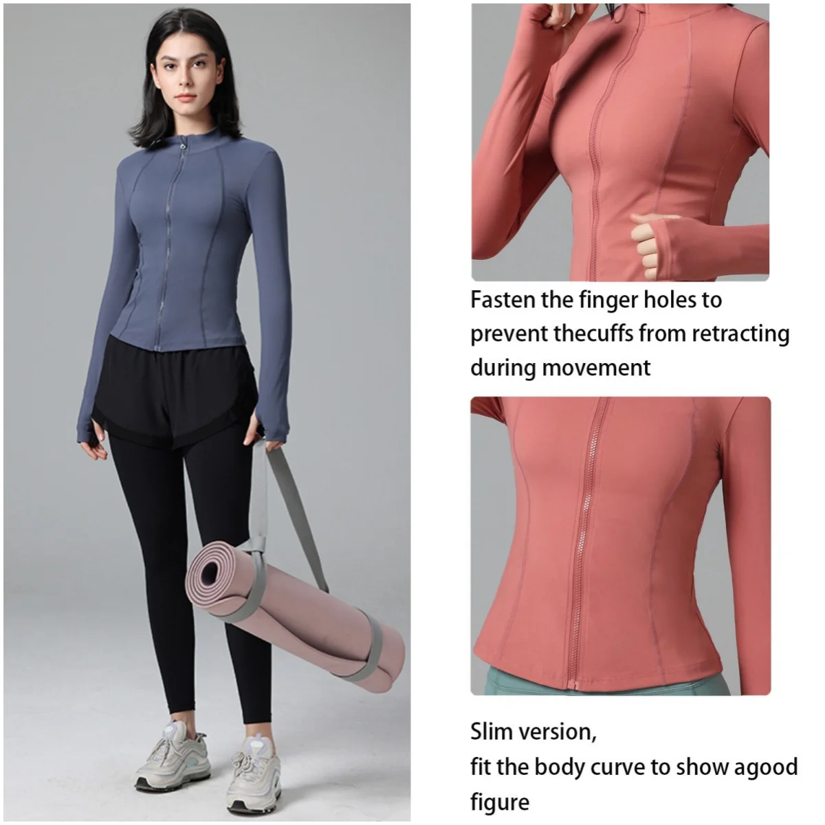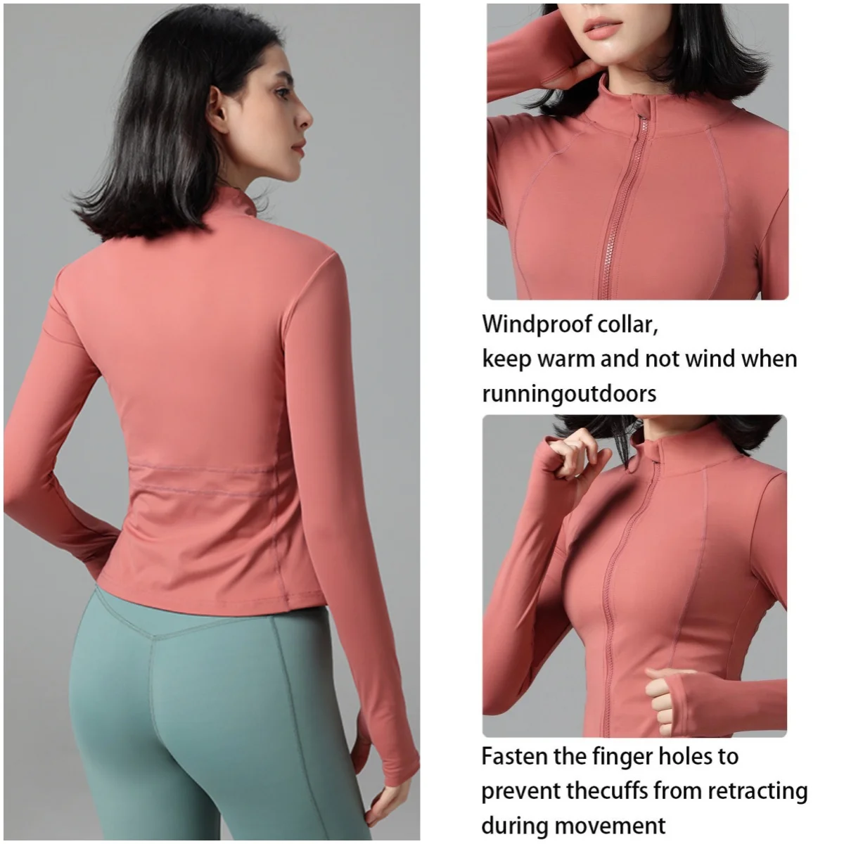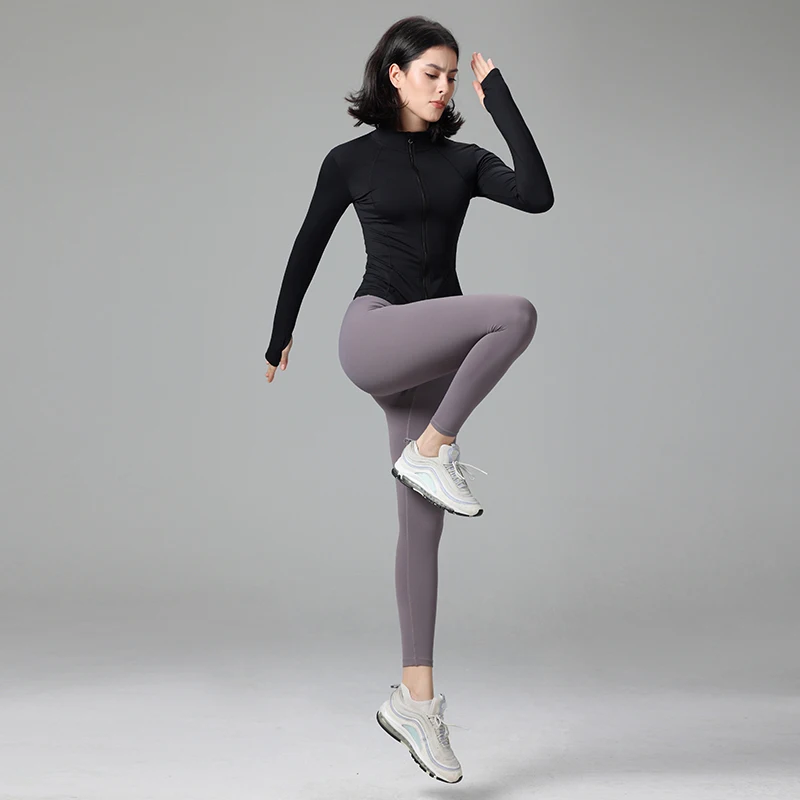 Custom Women Training Zipper Quick-drying Outwork Sports Wear Long Sleeve Jacket Tight Running Yoga Fitness Top with Finger Cots