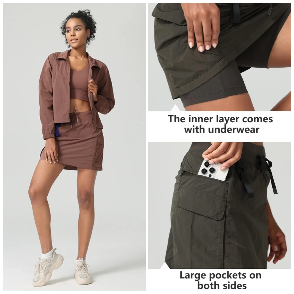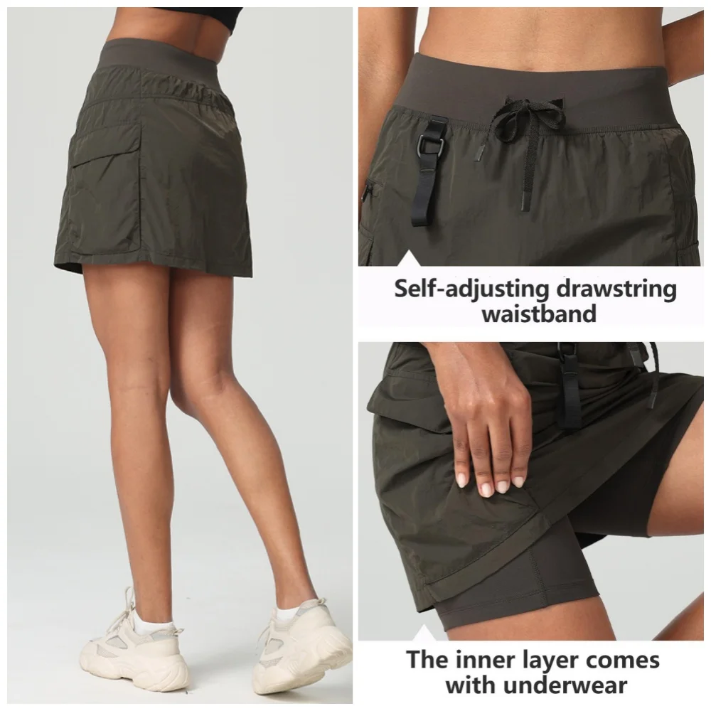 2 in 1 Womens High Waisted Fitness Active Ladies Shorts Tiered Running Workout Outdoor Sports Shorts Skirt with Build in Shorts