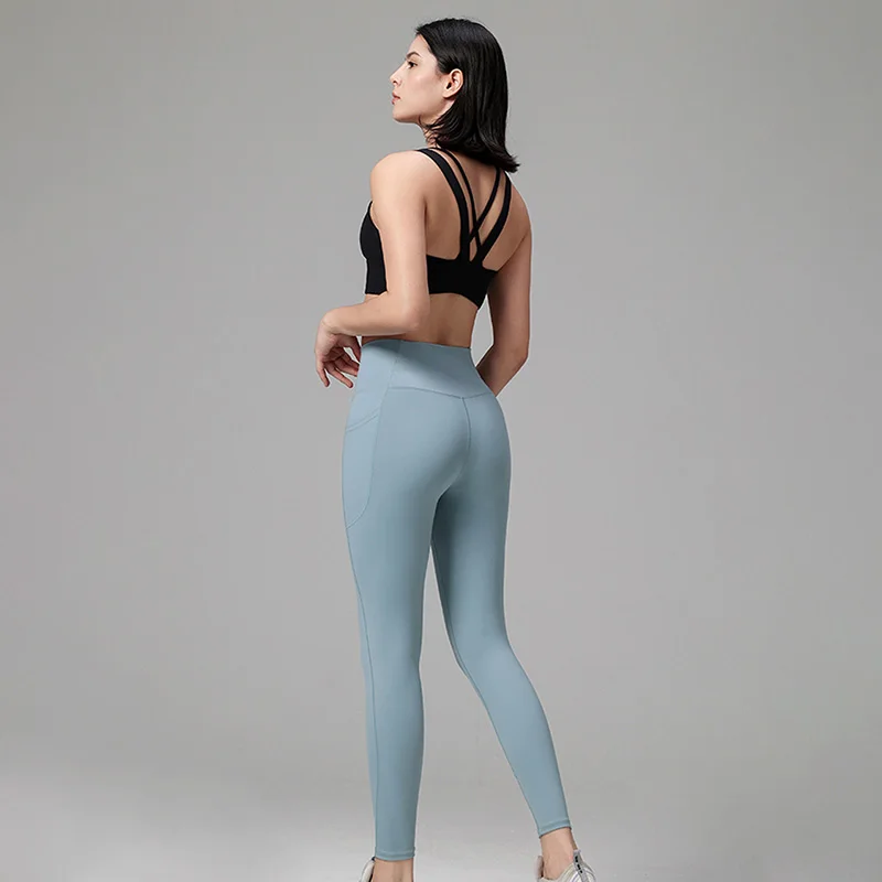 Women's High Waist Yoga Fitness Sports Leggings Quick-Drying Breathable Spandex Thin Ankle Pants Hip Lifting Running with Pocket