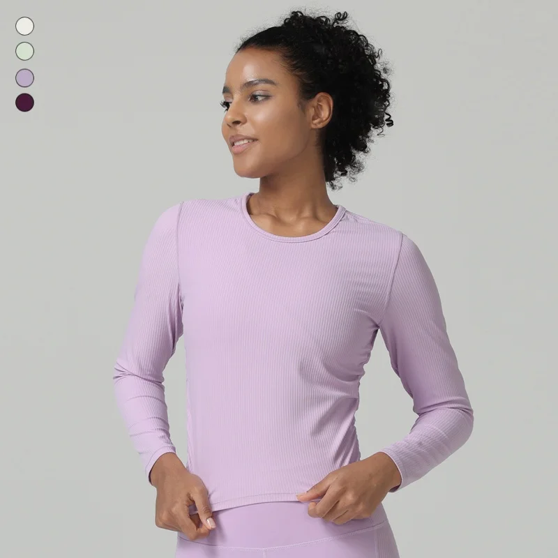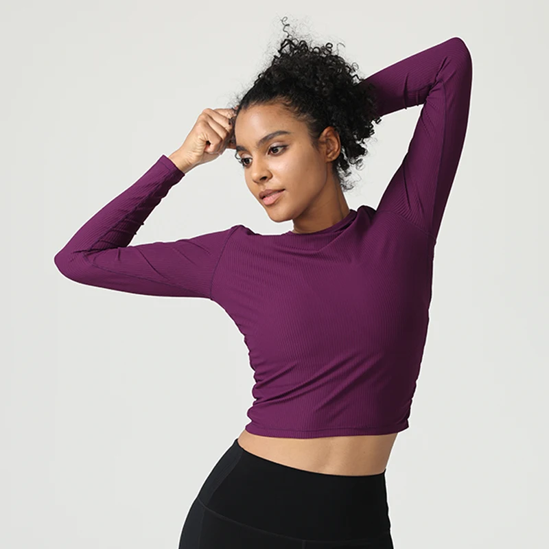 Factory Wholesale Women Compression T-shirt New Long Sleeve Yoga Top Comfy Fit Soft Stretchy Workout Running Sports Gym Top