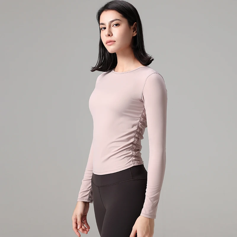 Tight-Fitting Sports Long-Sleeved Slimming Sports Top Breathable Casual Yoga Wear for Fitness Elastic Comfortable Nude Yoga Top