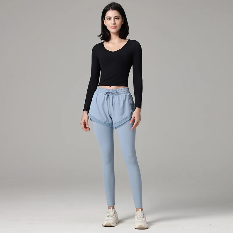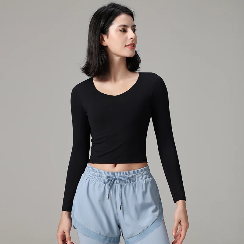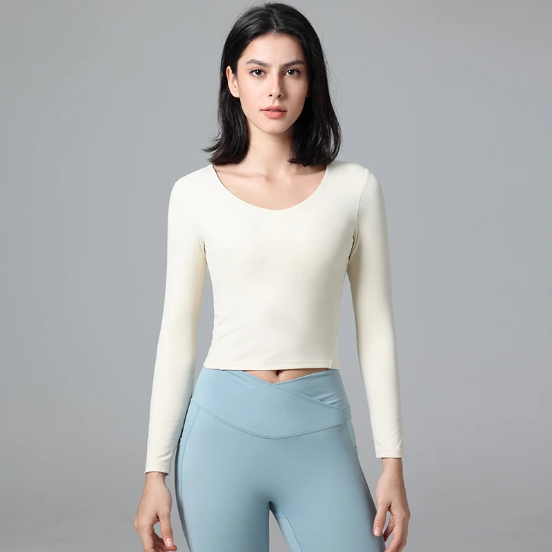 Wholesale Custom Female Yoga Long Sleeve Gym Top Women Fitness Sports Crop Top Casual Quick Dry Sportswear with Built in Bra