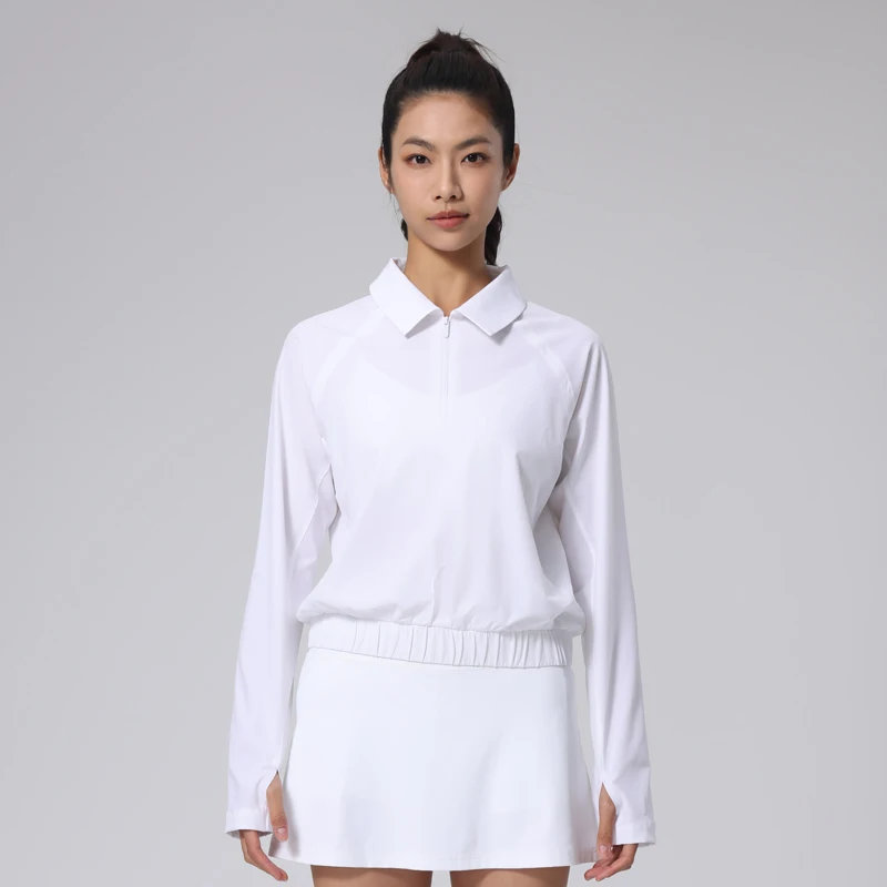 Custom Logo Women Quarter Zip Shirts Golf Tennis Wear Sports Training Workout Long Sleeve Shirt Tennis Tops Pullover for Women