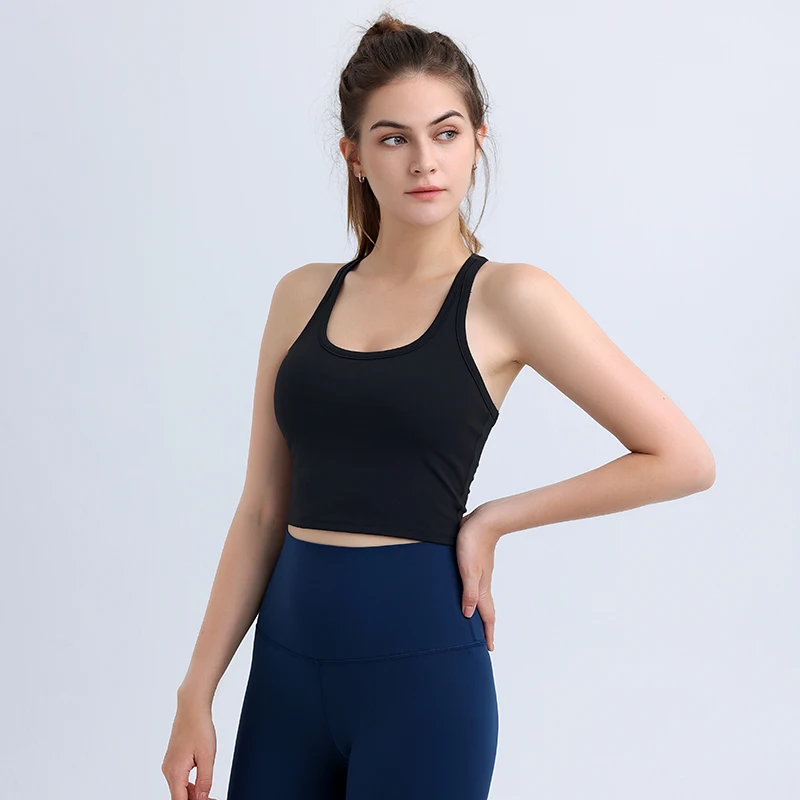 High Quality Women Racerback Permanent Cup Pad Running High Impact Support Yoga Workout Fitness Bras Tank Crop Top Sports Bra