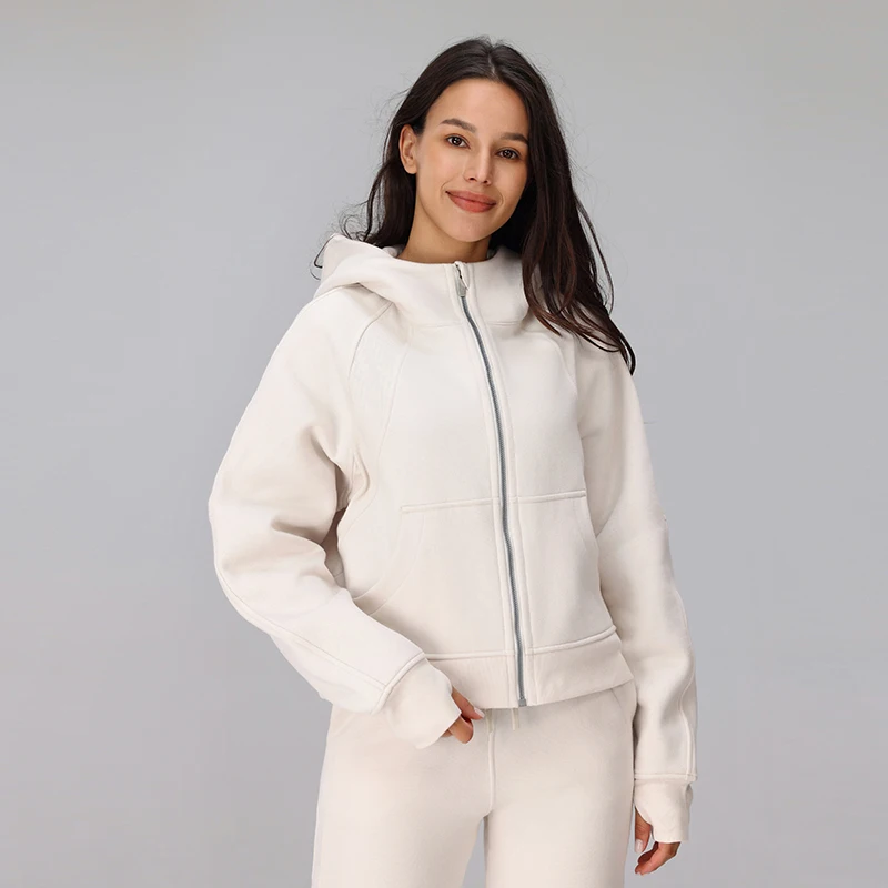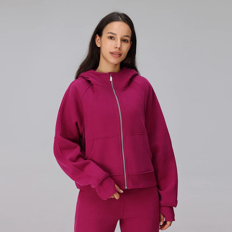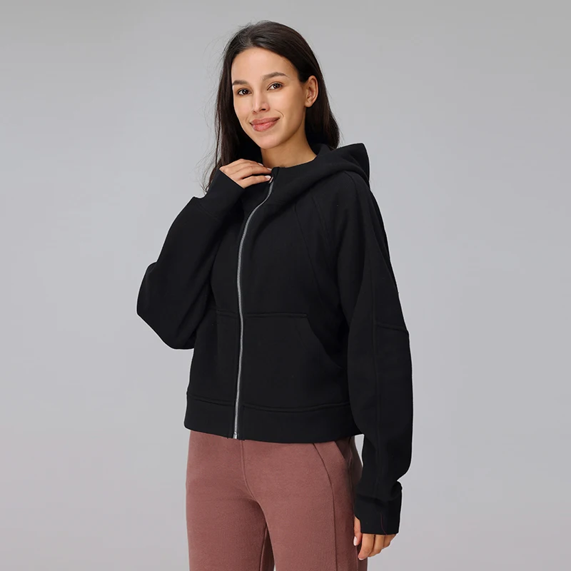 Women's Loose-Fitting Autumn Winter Full Zipper Hooded Sweatshirt for Scuba Yoga Fitness Running Jogging Tracksuit Jacket Women