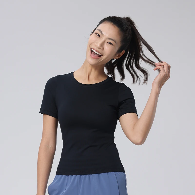 YISHENHON 2026 New Design Quick Drying Casual Tight Short Sleeve Yoga Wear Women High Intensity Running Sports Fitness T-shirt