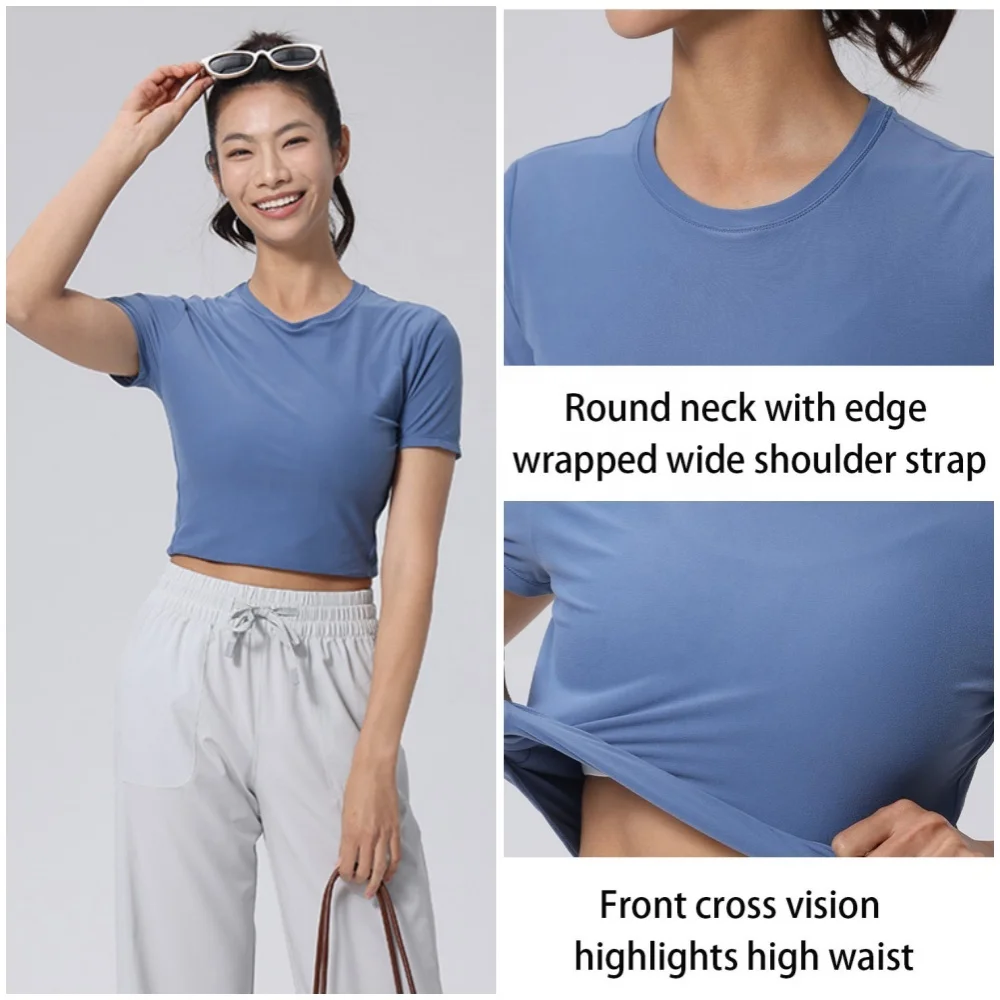YISHENHON 2026 New Design Quick Drying Casual Tight Short Sleeve Yoga Wear Women High Intensity Running Sports Fitness T-shirt