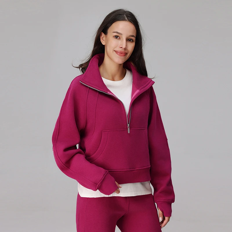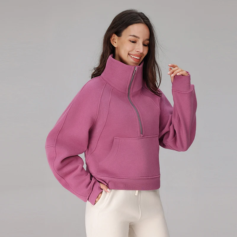 Fall Winter Blank Warm Long Sleeve Sweatshirt Women Casual Custom Running Sports Tops Collar Thickened Zip Pullover for Women