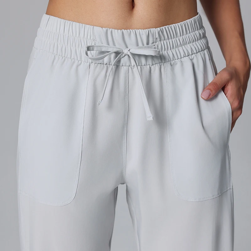 Women's Summer Style Casual Outdoors Sports Running Fitness Pants High-Waist Wide-Leg 4-Way Stretch Woven Fabric Active Pants