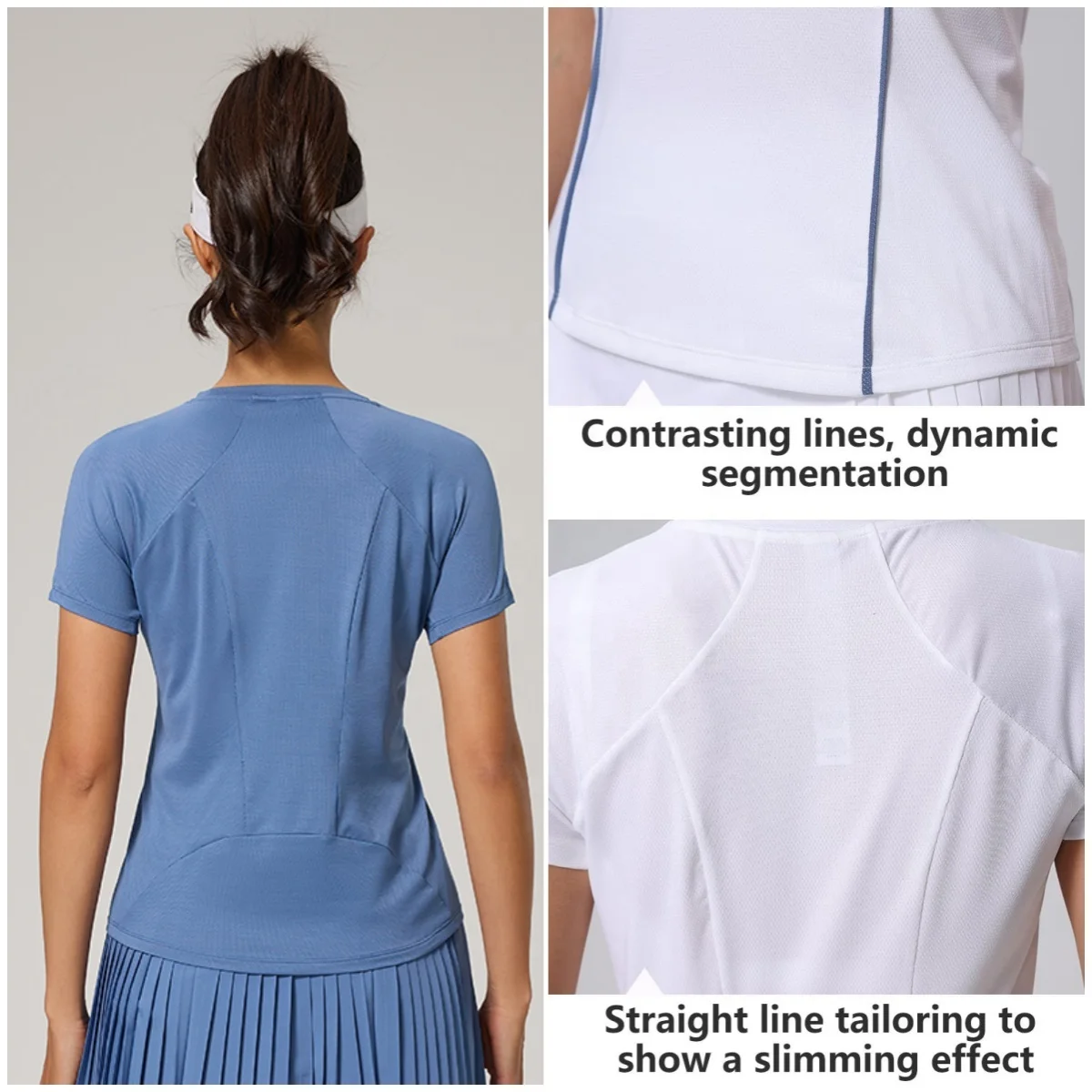 Summer Custom Logo Tennis Wear Short Sleeved T-Shirt Tennis Skirt Set Fitness Running Yoga Sports Tops Gym Active Tops for Women