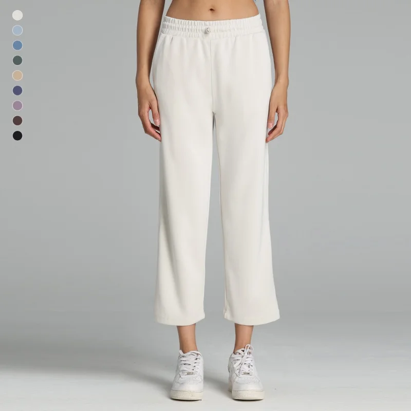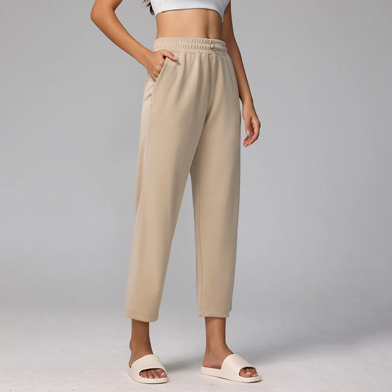 Women Custom Drawstring Waist Jogger Sweatpants Super Soft Casual Solid Color Baggy Balloon Leg Active Capri Pants for Ladies