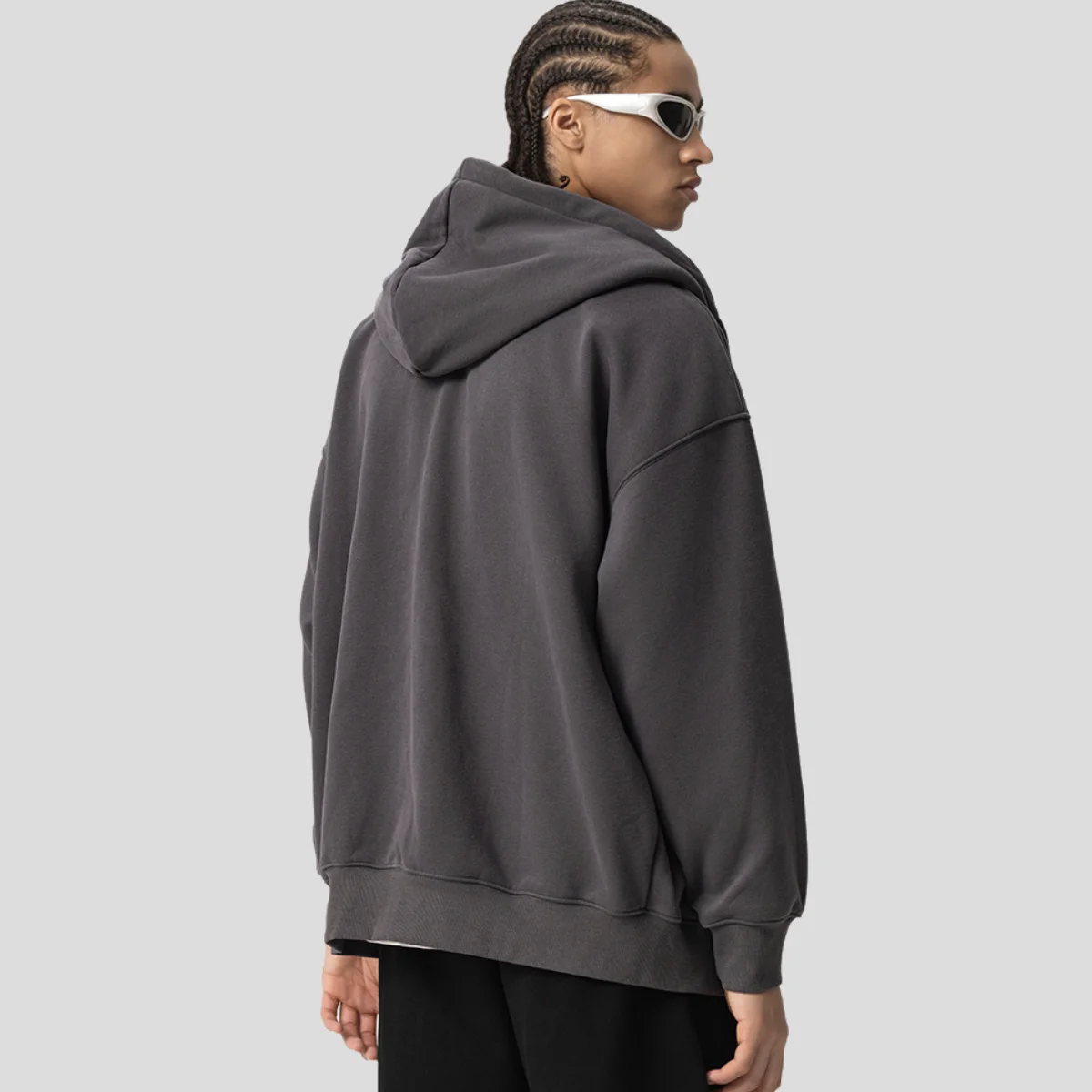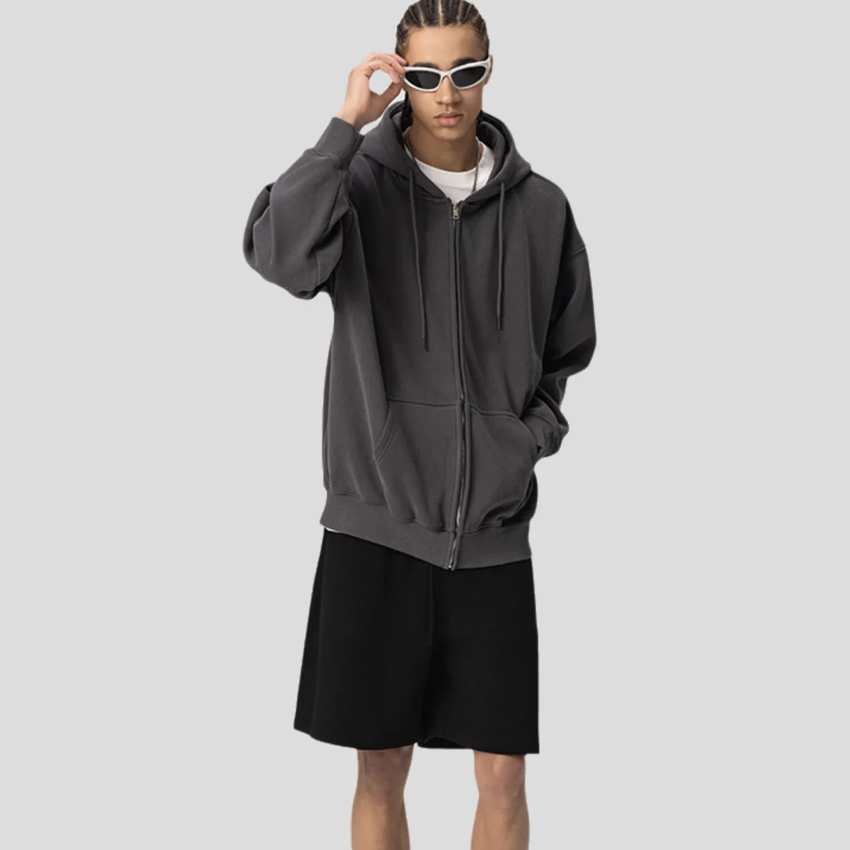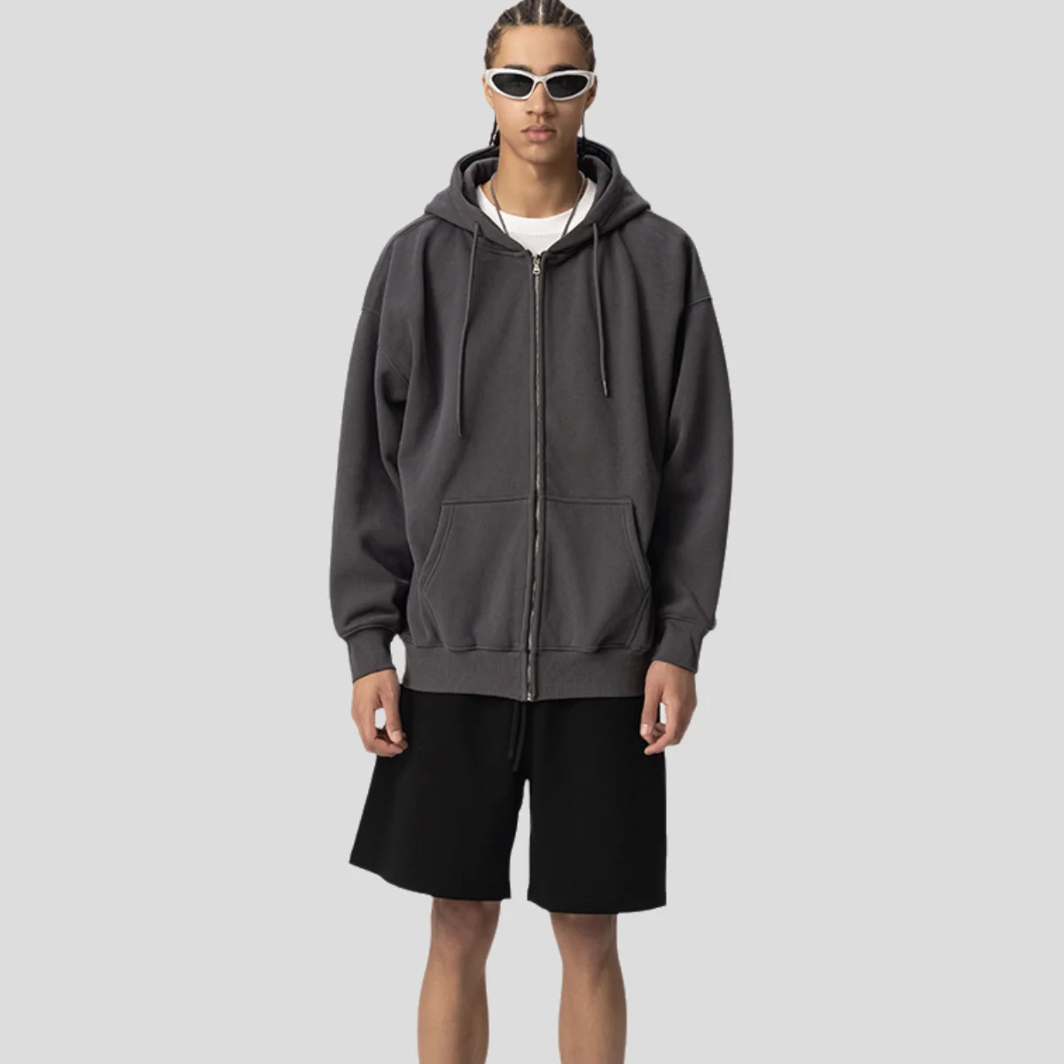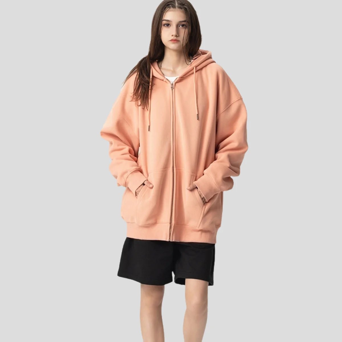 Unisex Zipper Design Hooded 430g Cotton Blends Fleece Lined Fashionable Solid Pattern Boxy Blank Oversized Hoodie
