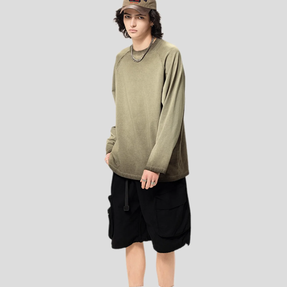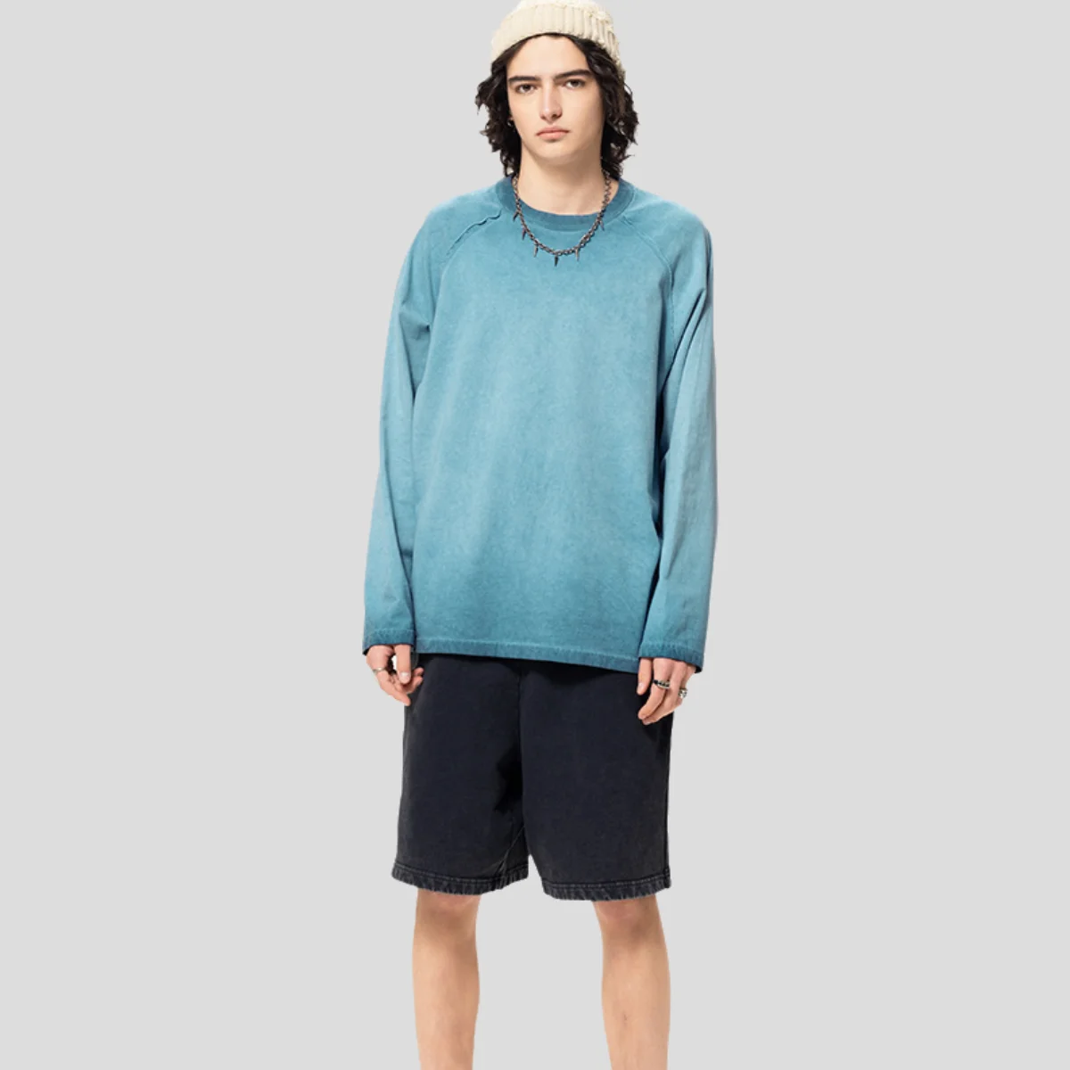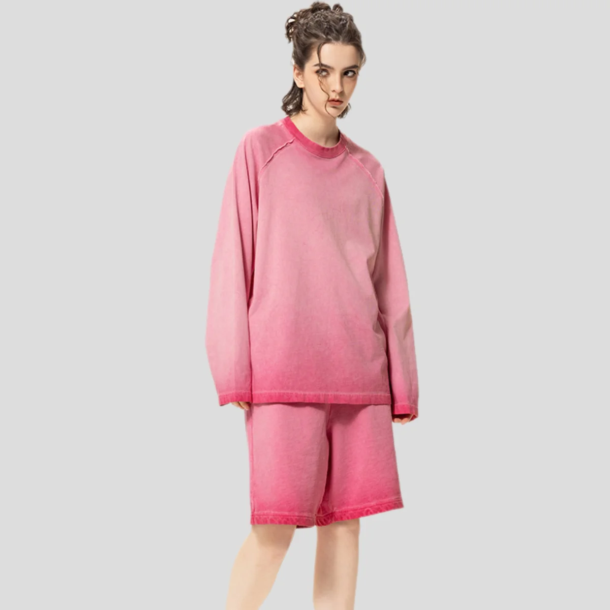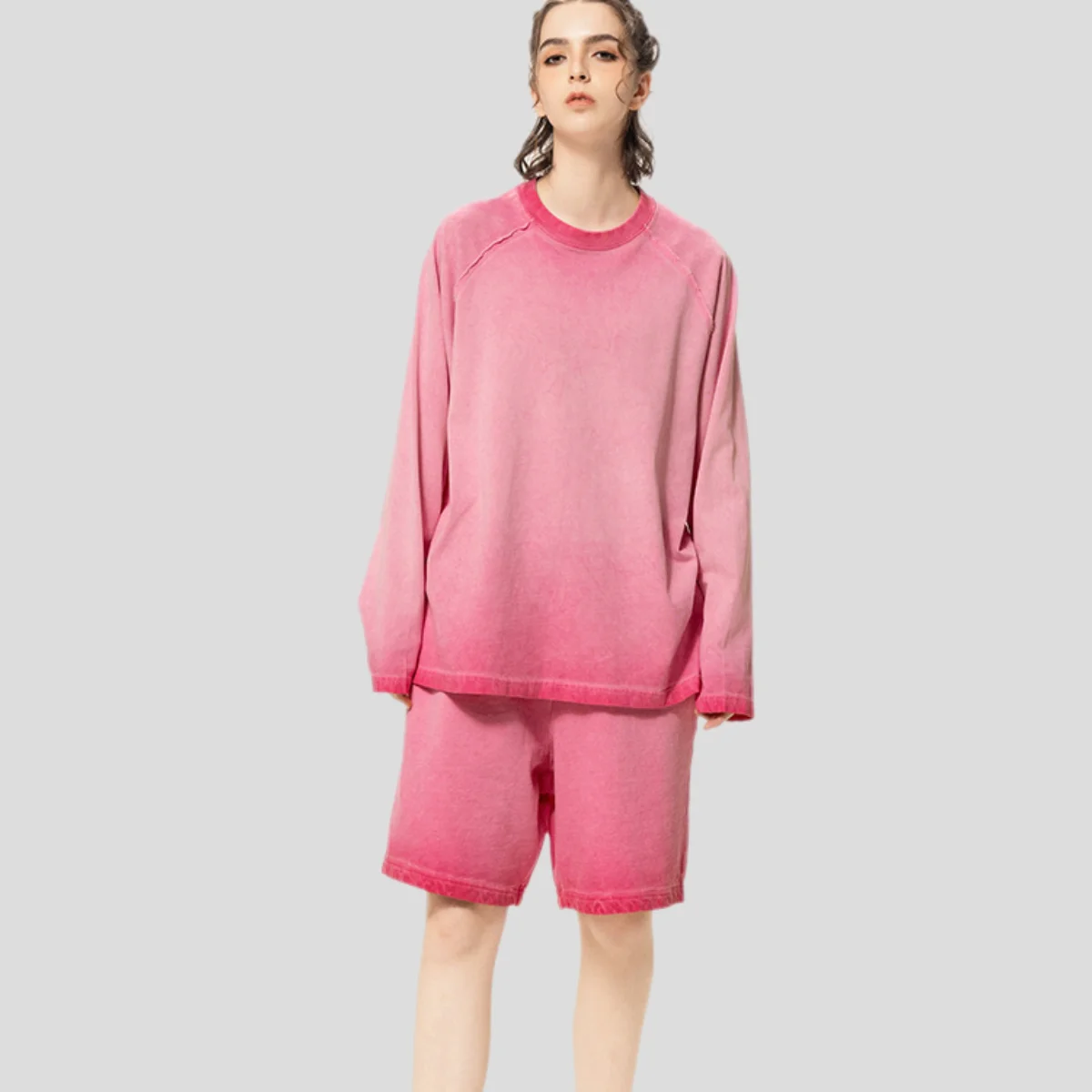 Wholesale Custom 270G Vintage Fashion Brand 100% Cotton Knitted Oversize Couples Acid-Washed Long Sleeves T-shirts