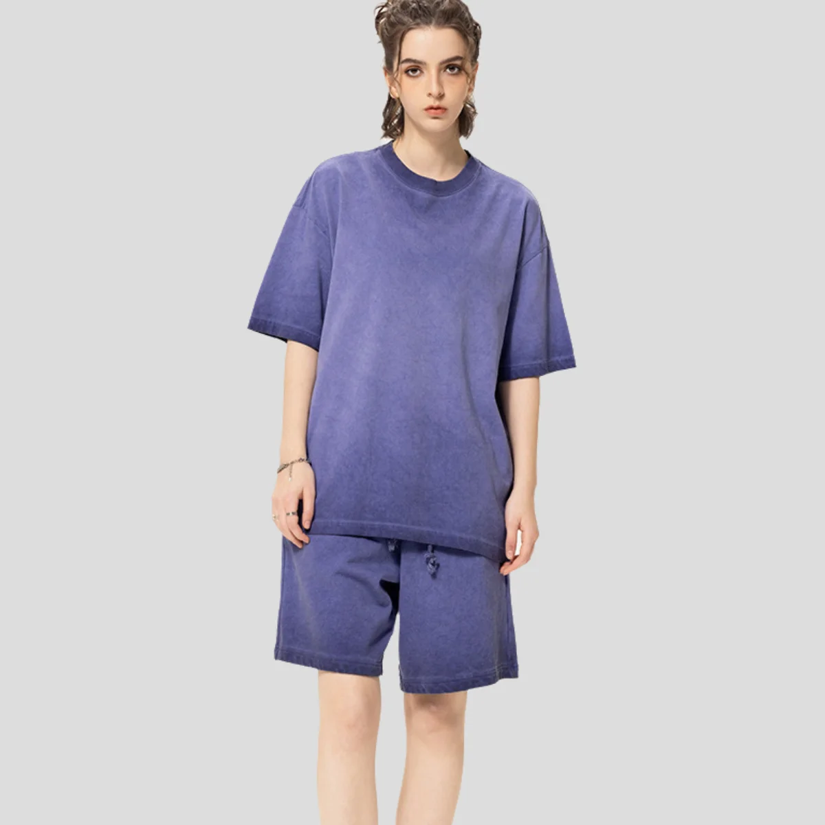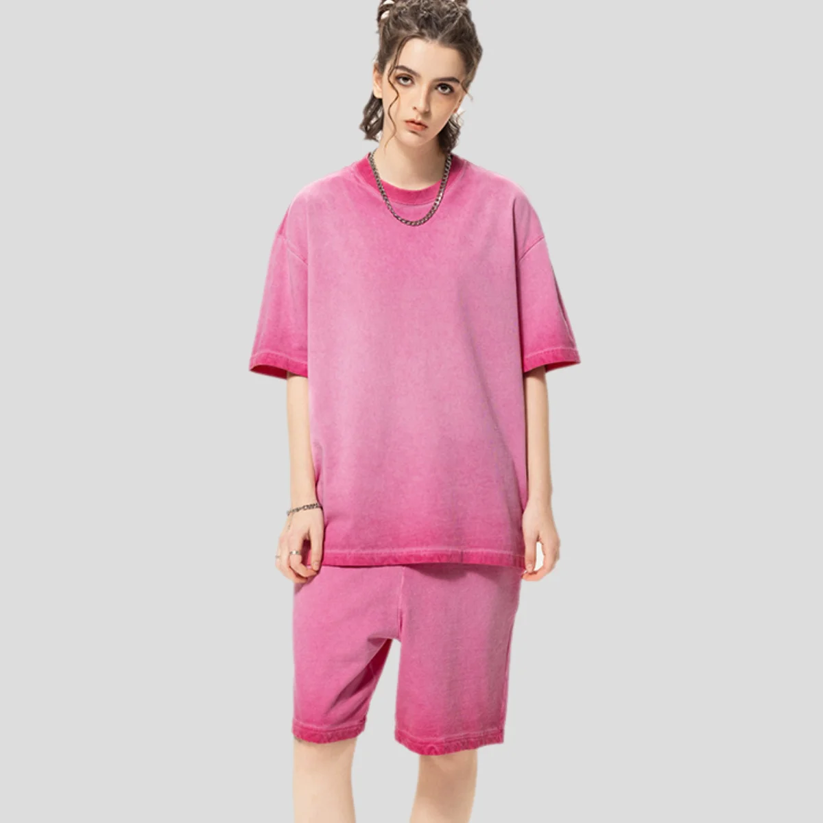 Wholesale Vintage Street Wear T-Shirts Batik Couples Design Short Sleeve 280g Heavyweight Cotton Acid Wash 100% Knitted Cotton