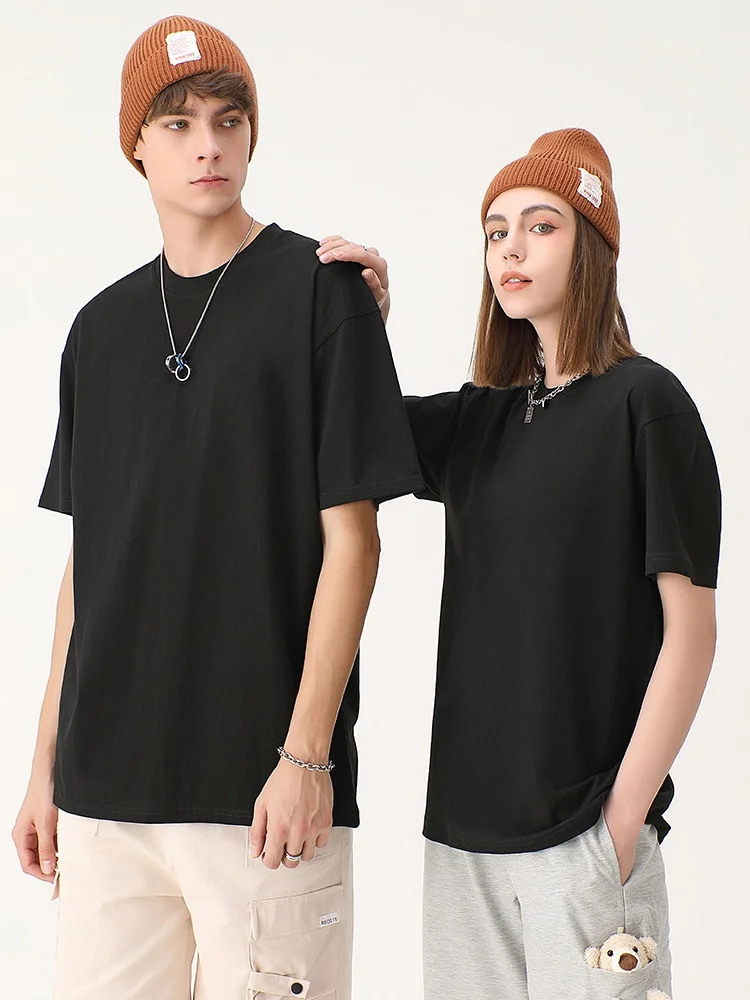 230G 100% Cotton Short Sleeve T-Shirt Couple Print Quick Drying Small round Neck Wholesale