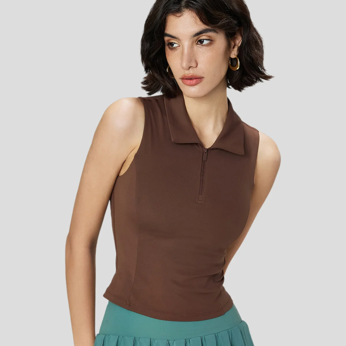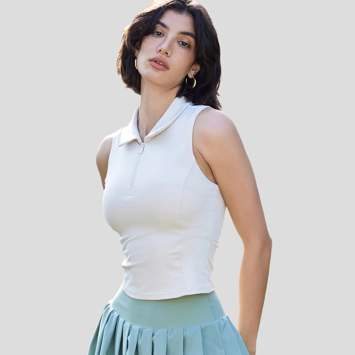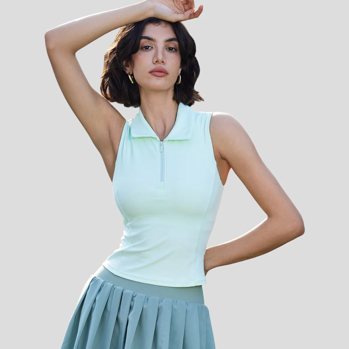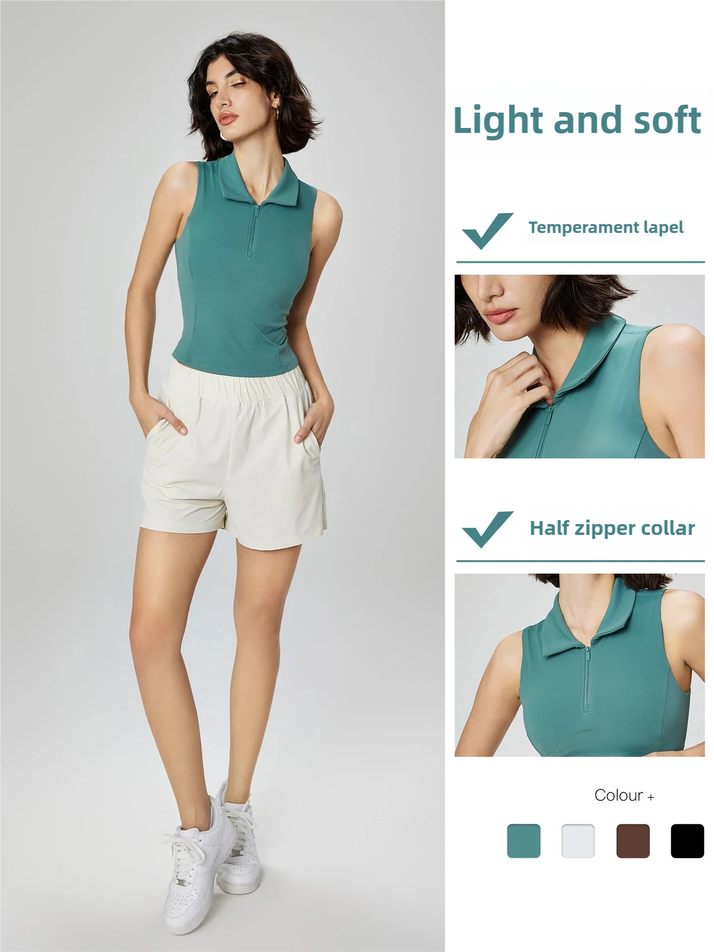 High Quality Women's Ice Mint Half Zip Running Top Detachable Chest Cushion Removable Pads Folded Neck Sleeveless Breathable