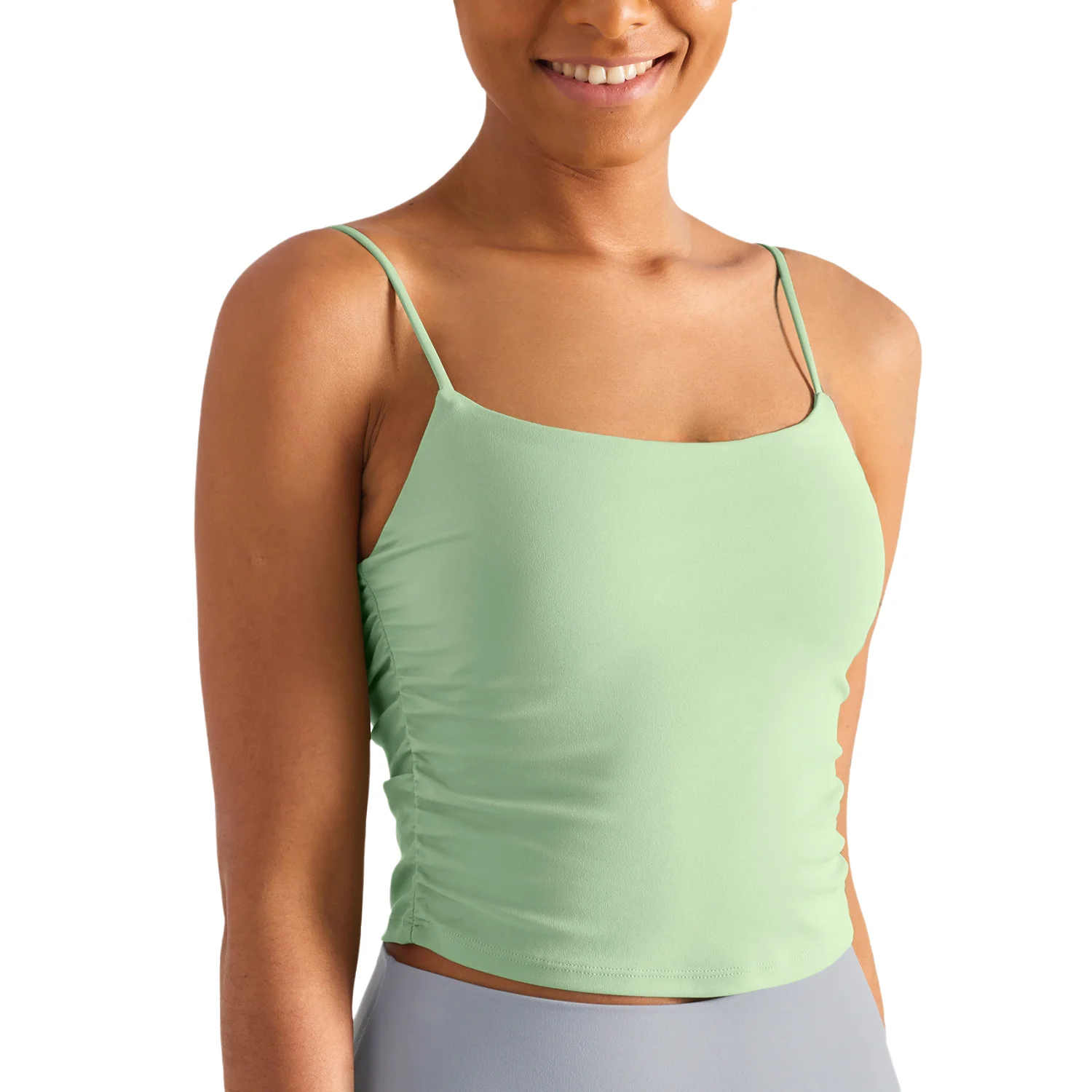 European American Sportswear Tank Top Sexy Workout Fitness Side Ruched Sleeveless Women's Yoga Crop Quick Dry Lightweight Adults