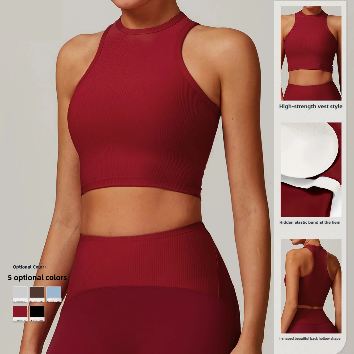 Women's Lightweight Jogger Tank Top High Neck Soft Stretch Design with Removable Chest Pad Breathable Gym Crop Tops for Workout