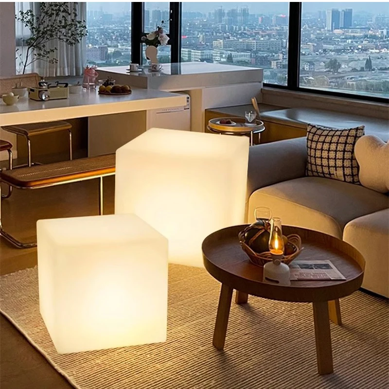 Wholesale Modern Design Outdoor LED Furniture Patio Garden Illuminated Plastic Cube Table and Chair with Remote Control Seat