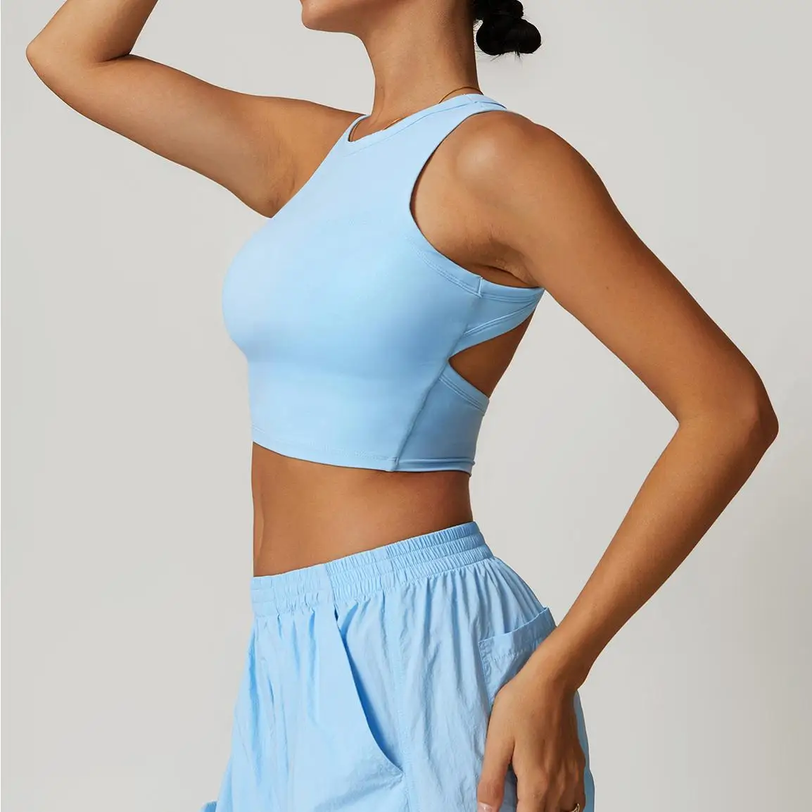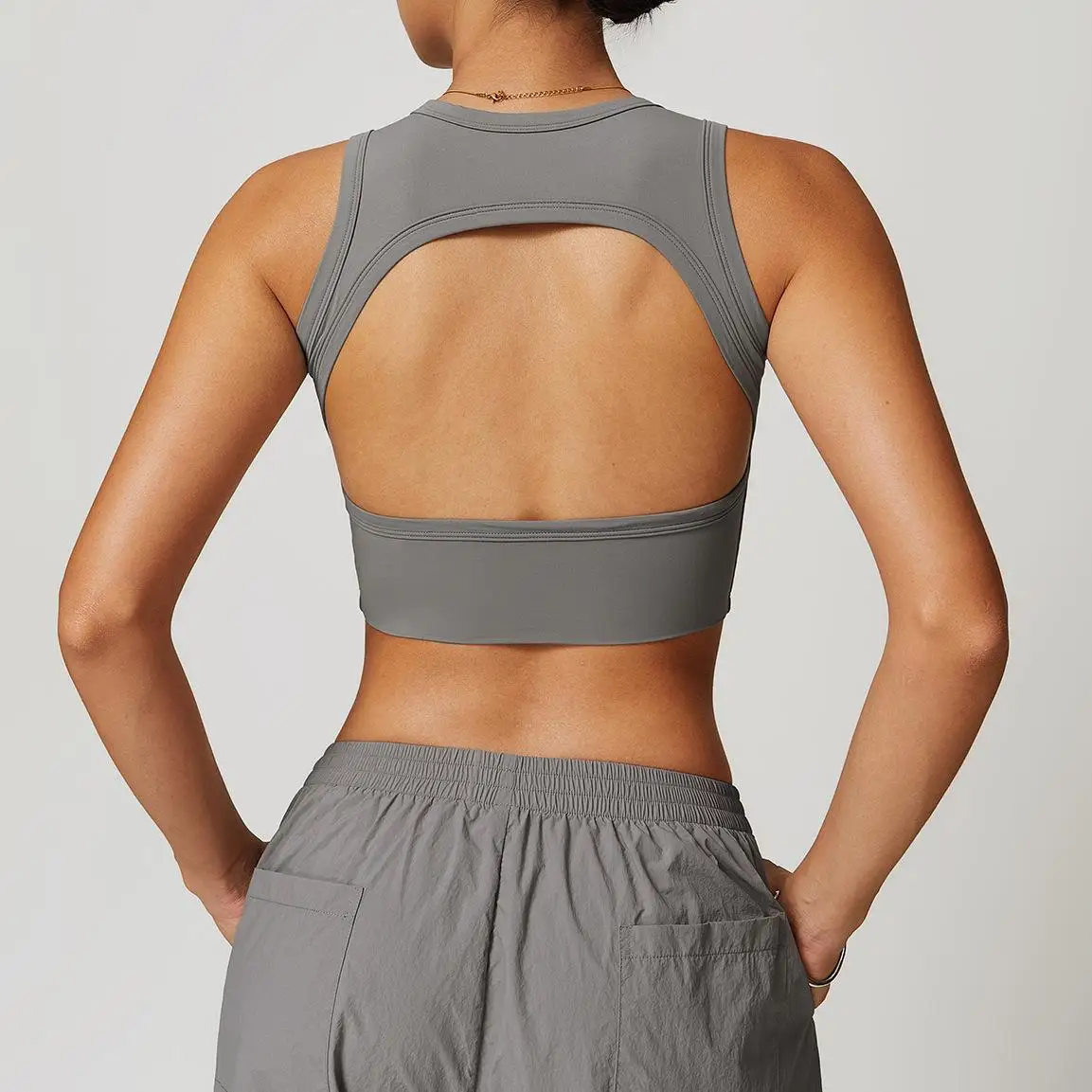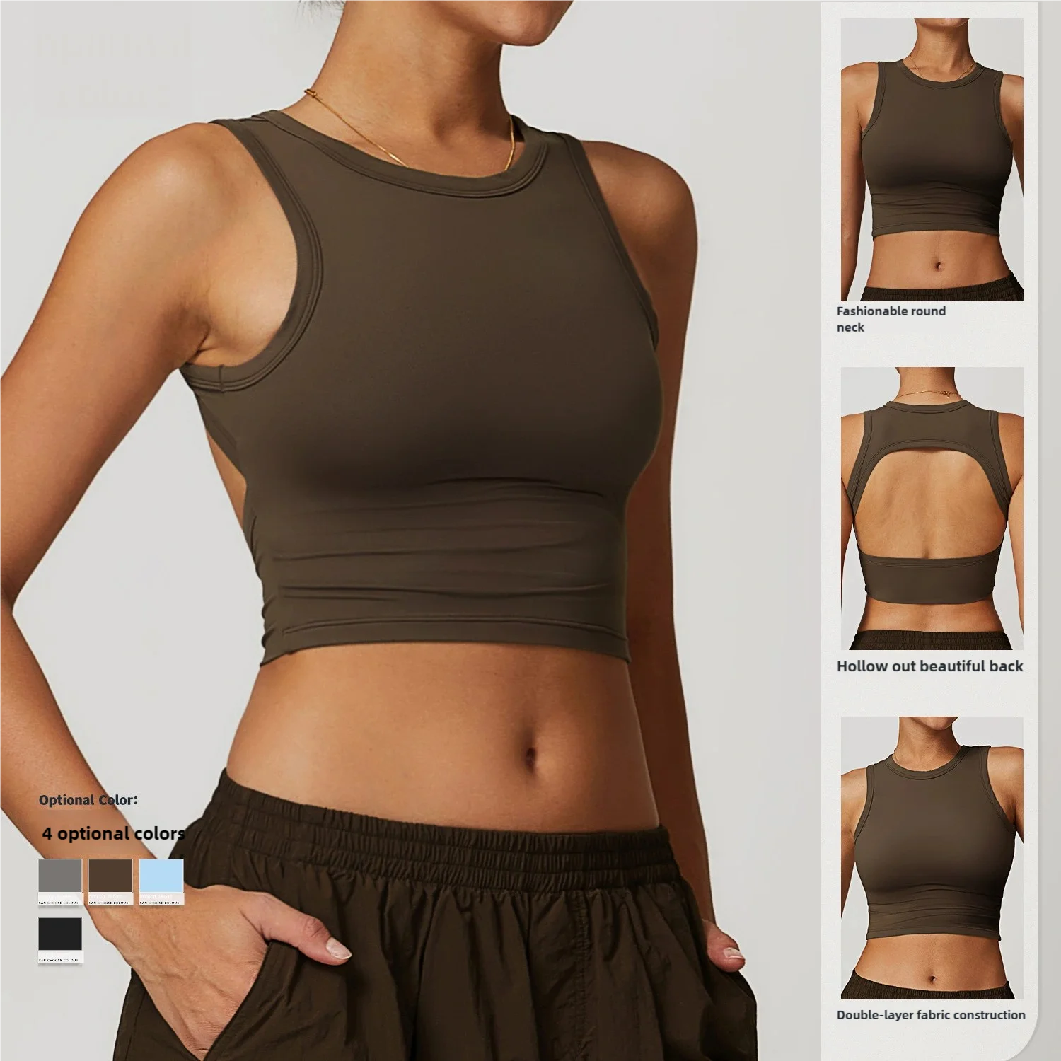 Hot Sale Women's Solid Color Sleeveless Quick-Dry Fitness Tank Top Bra Lightweight Hollow Beautiful Back Yoga Tank Breathable