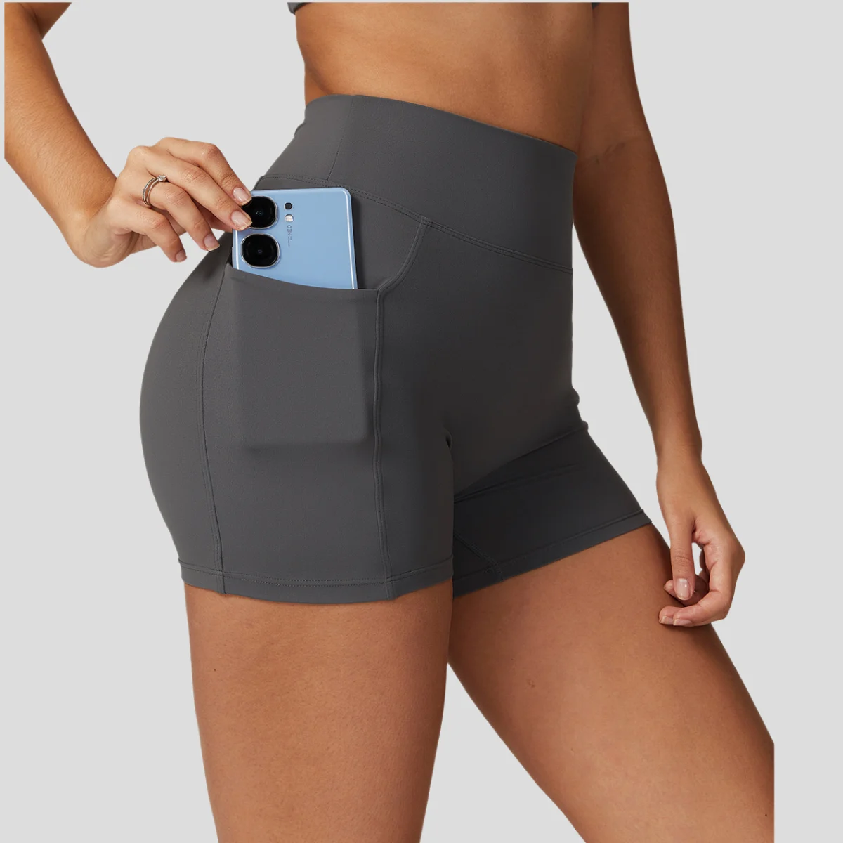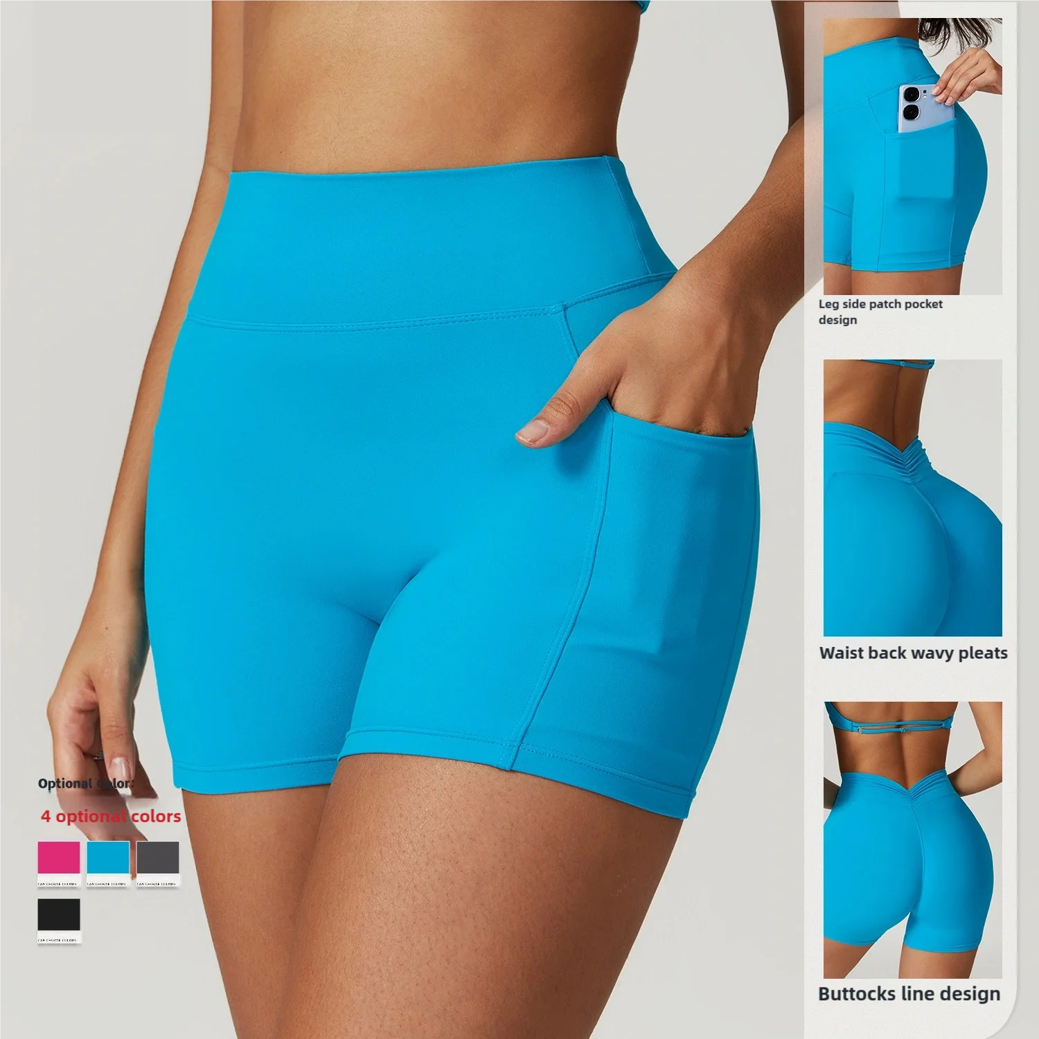 Nude High Quality Tight Yoga Shorts for Ladies Comfortable Butt Lifting Slimming Fitness Pants Athletic Pocket Solid Pattern