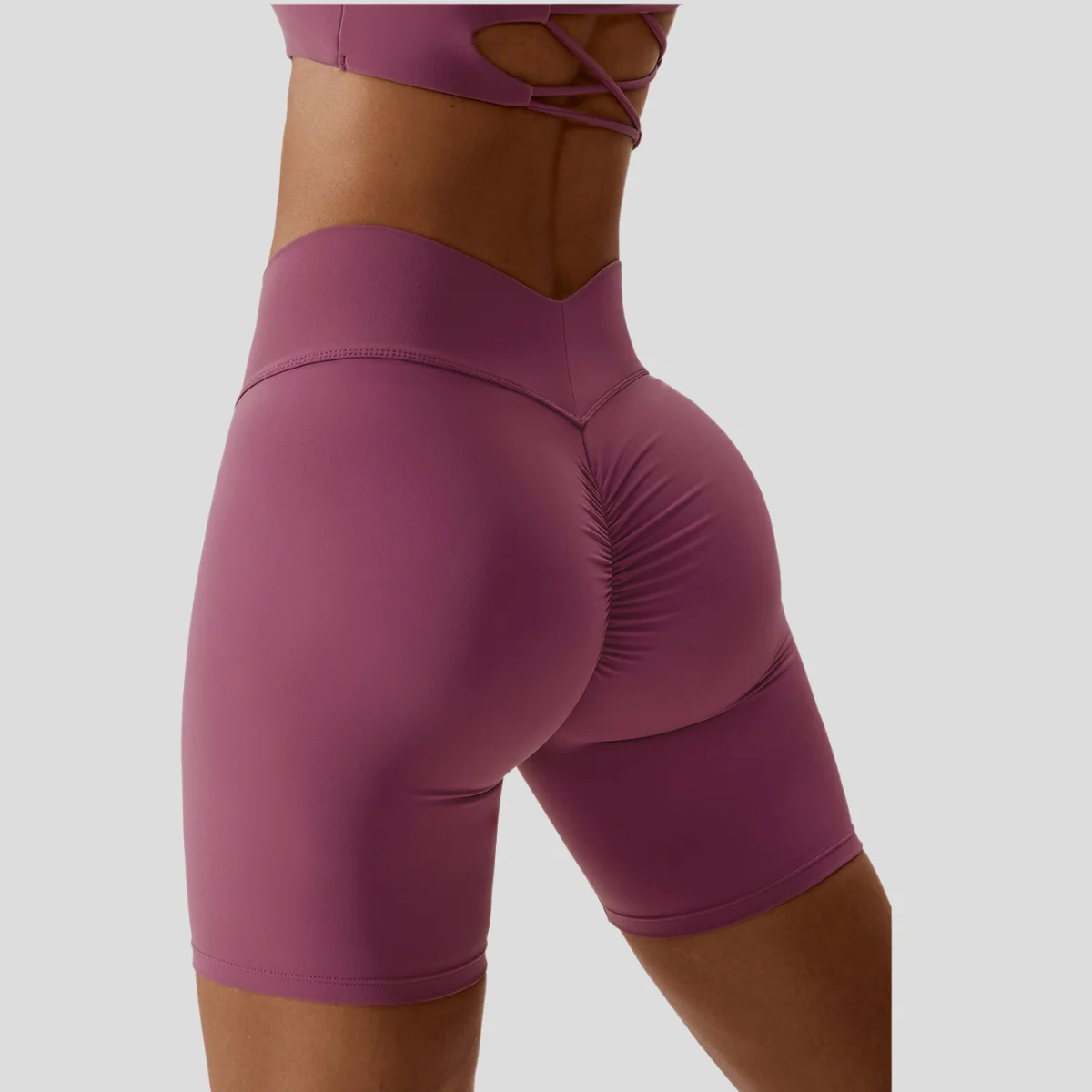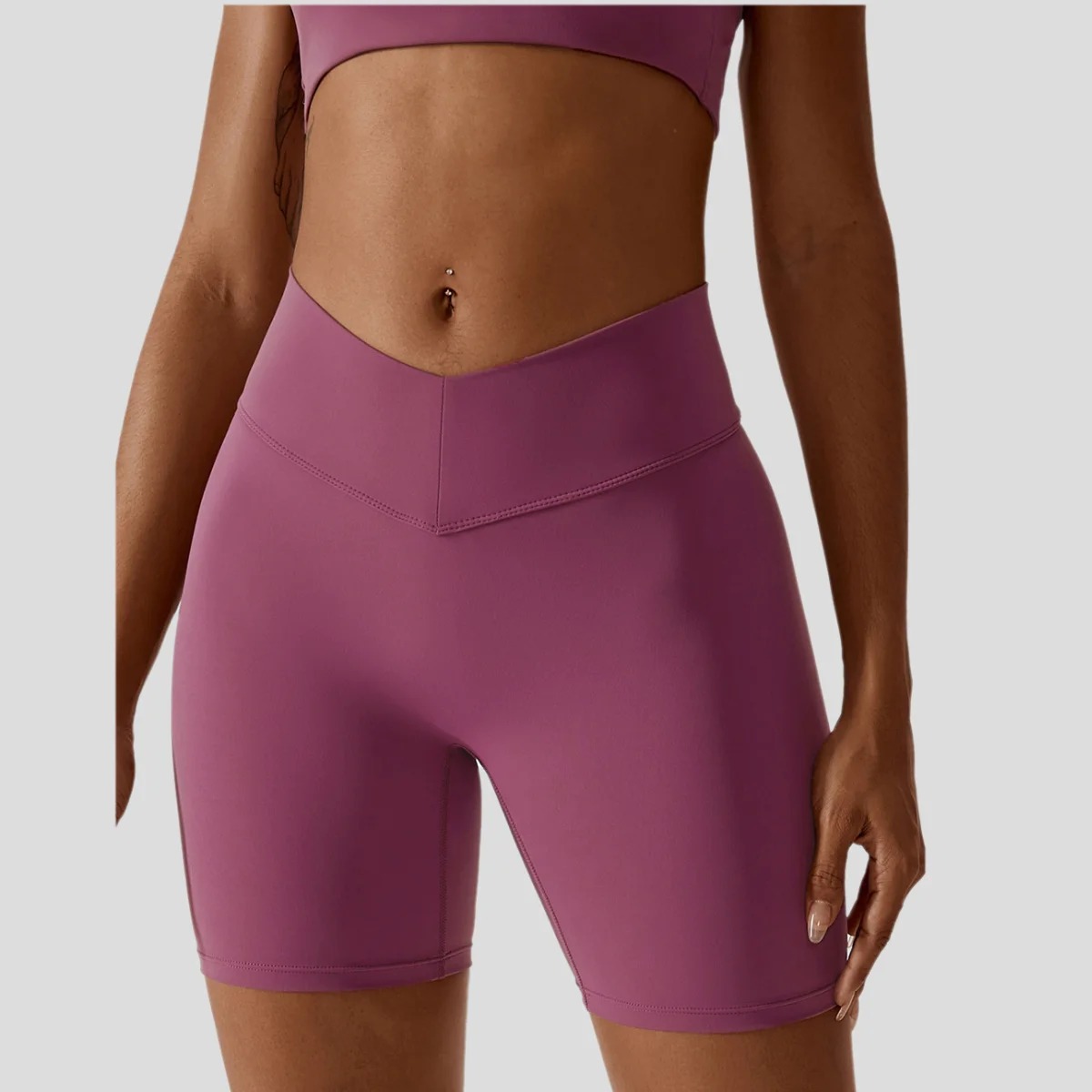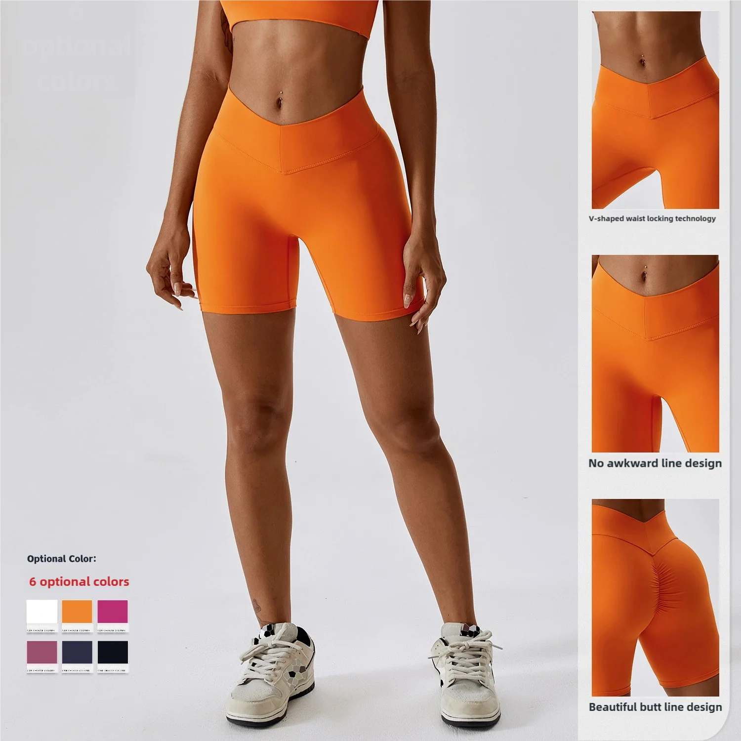 V-Shape Waist High Stretch Quick Dry Athletic Shorts for Women Elastic Solid Yoga Cycling Sports Shorts Butt Lifting Effect