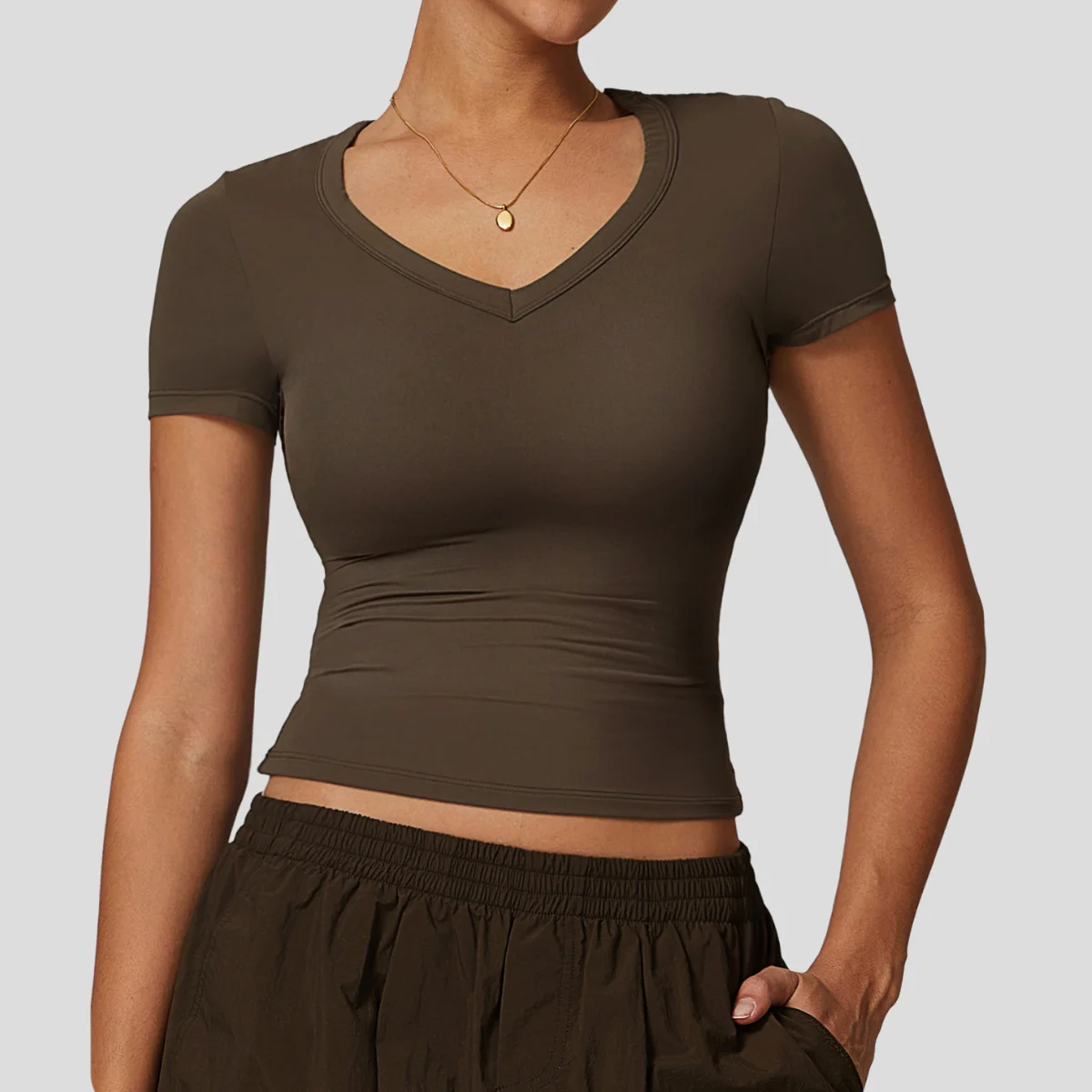 Women's Quick-Dry V Neck Sports Top for Outdoor Workout Pilates & Yoga Breathable Slim Fit Seamless T-Shirt with Naked Feeling