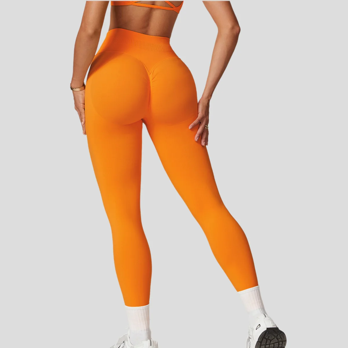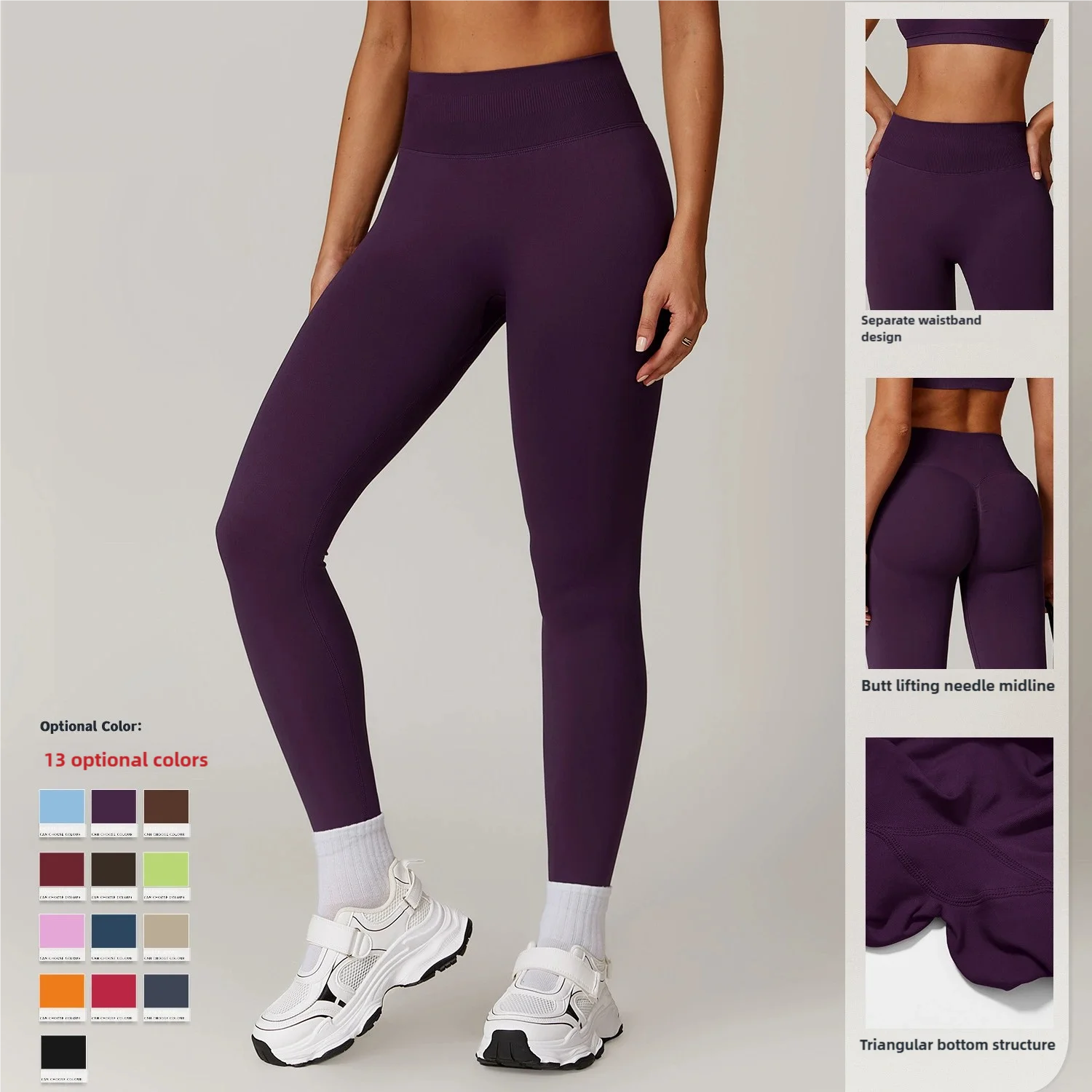 Wholesale Elastic Breathable Soft Peach Hip Tight Slim Yoga Pants High Waist Lifting Buttocks Athletic Running Leggings Solid