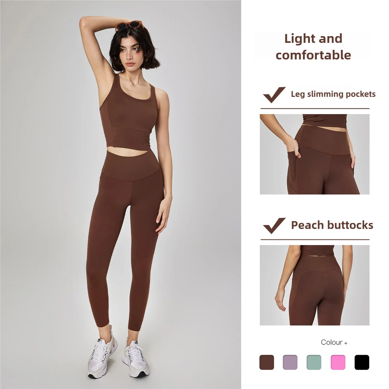 High Strength Fitness Tights Running Tights for Women Wholesale Custom Naked Feeling Peach Hip Sports Yoga Leggings With Pockets