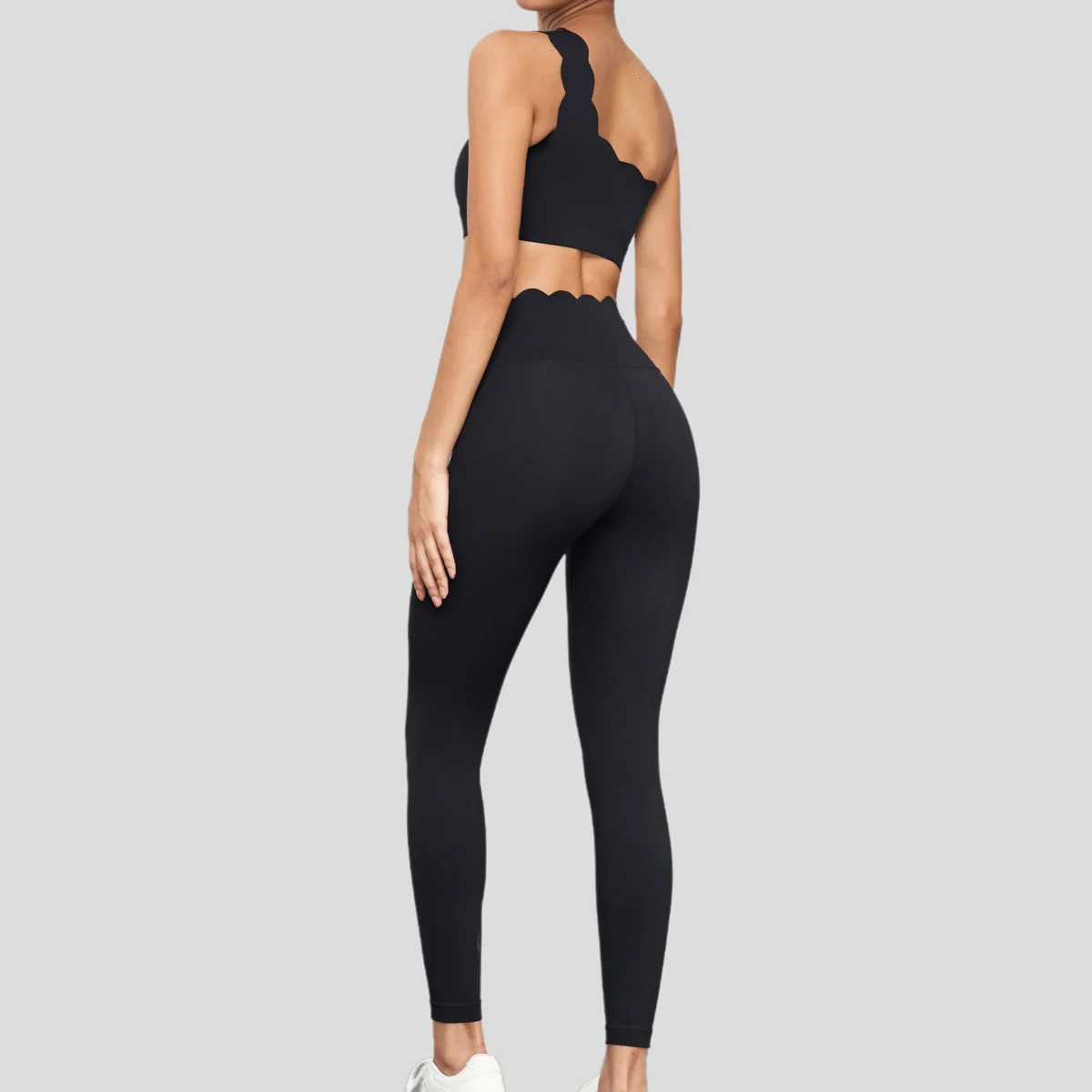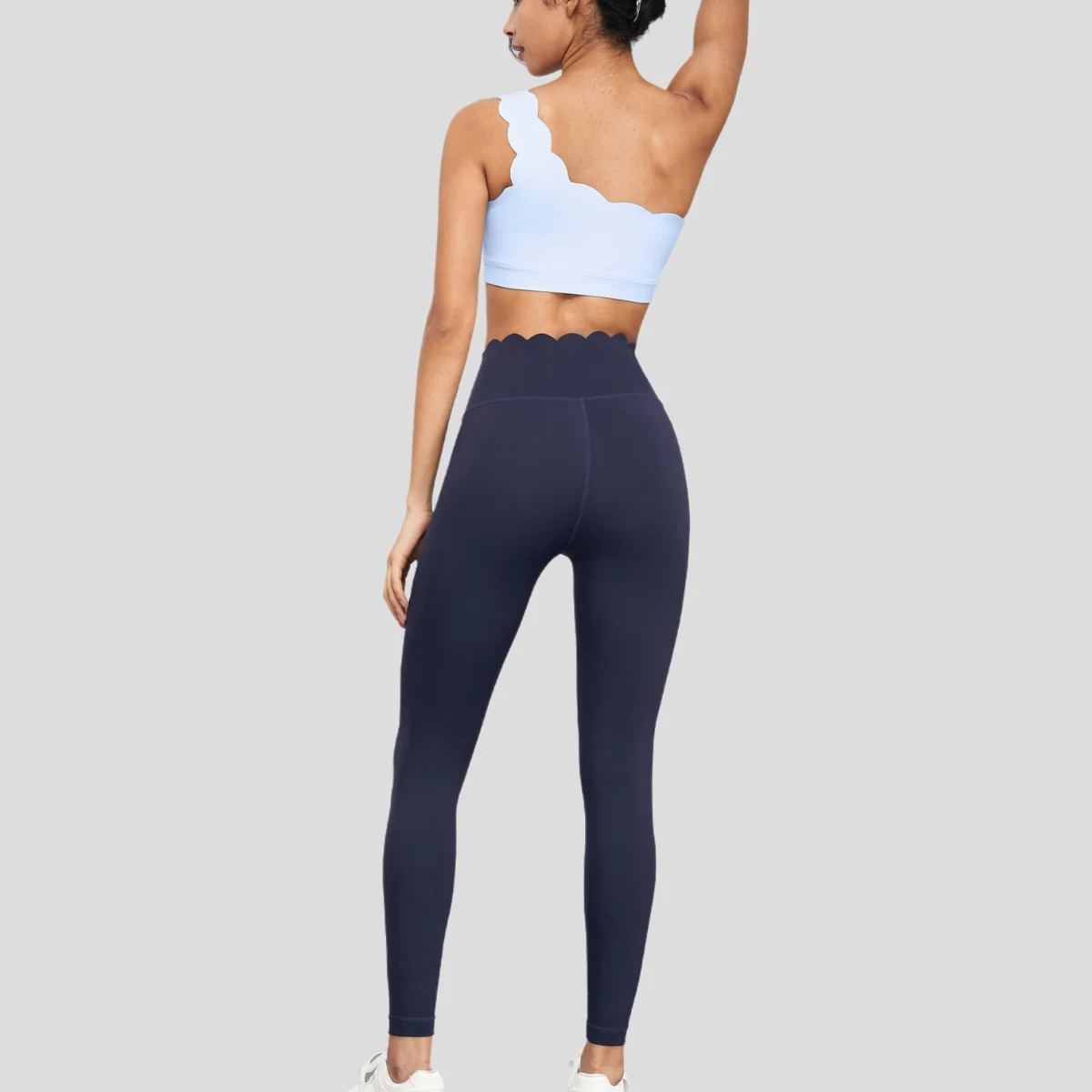 High Waist Elastic Yoga Pants Solid Pattern Custom Workout Activewear with Petal Waistband No Front Seam Sports Leggings