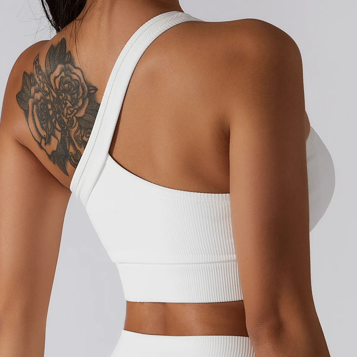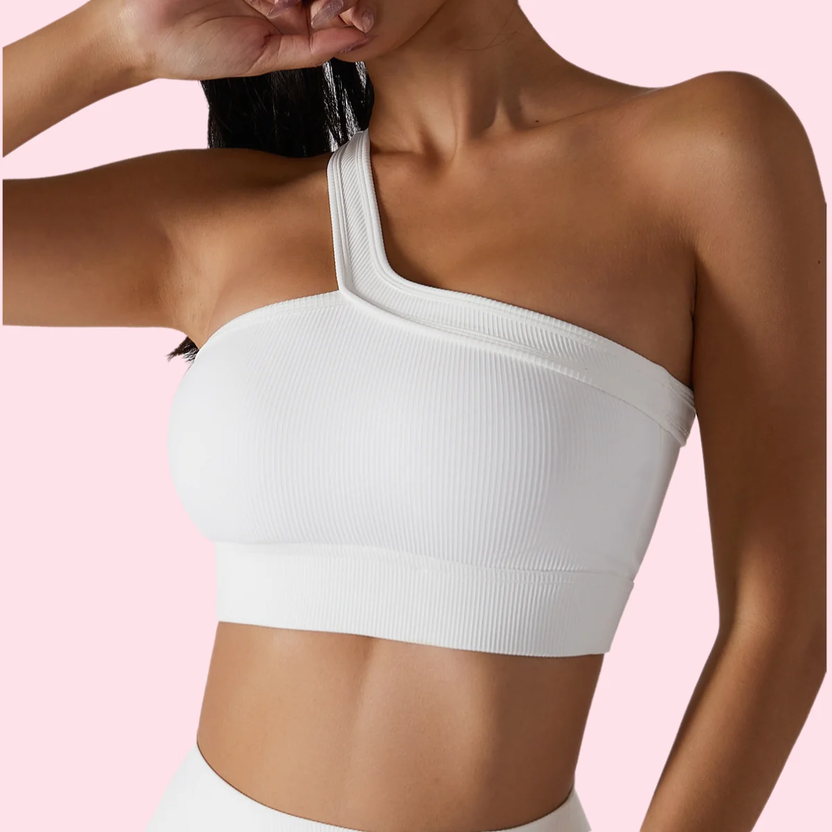 Custom Nylon Spandex Sports Bra High Quality Asymmetrical Design Gym Workout Apparel with Adjustable Strap for Fitness Yoga