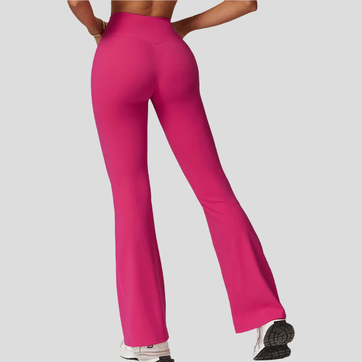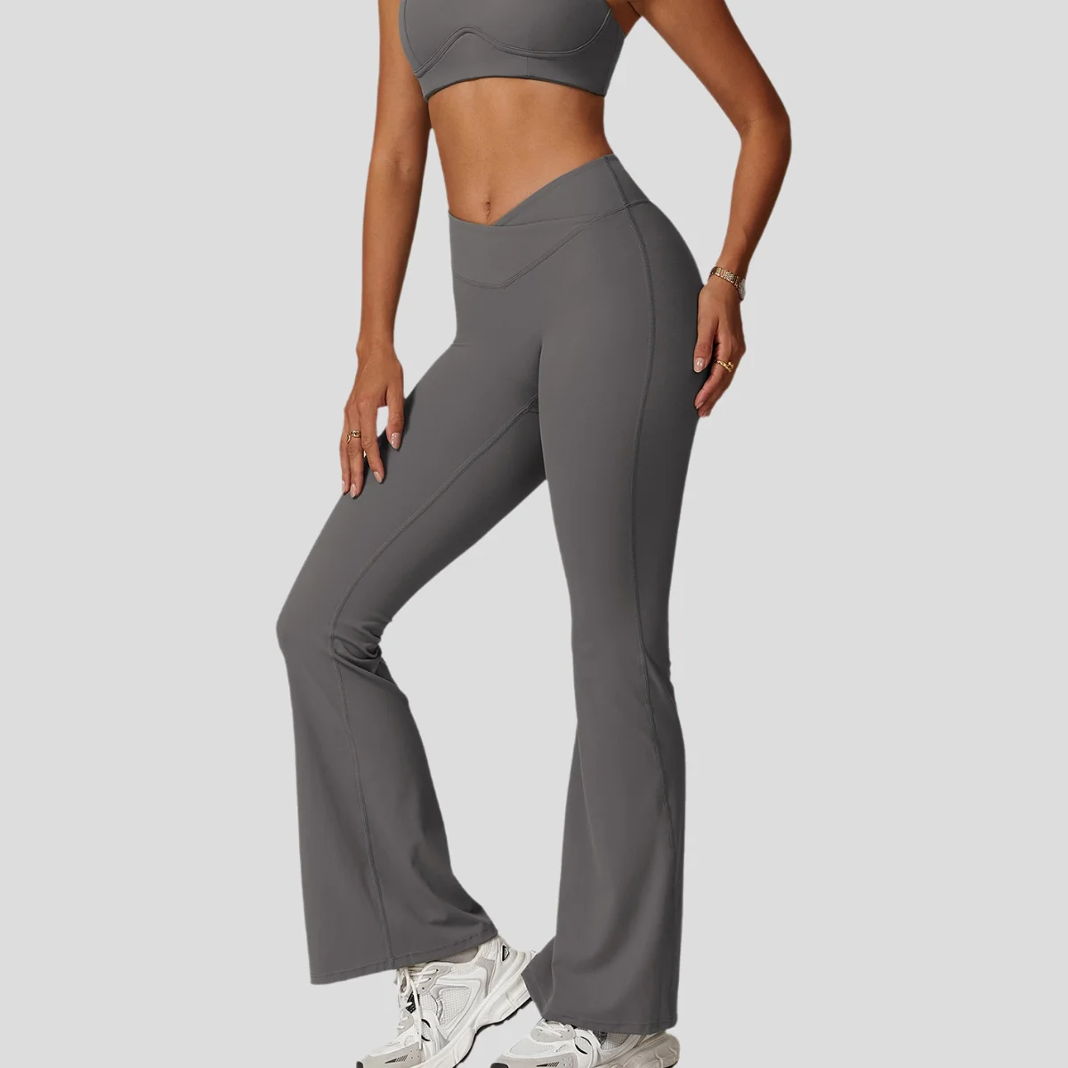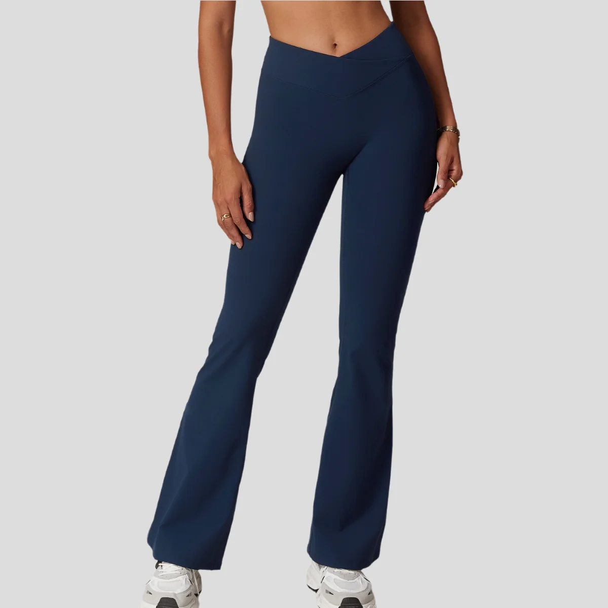 Wholesale V Cross Yoga Pants with Elastic Waist High-Waist Flared Design Wide Leg Soft Skin Solid Pattern for Sports Fitness