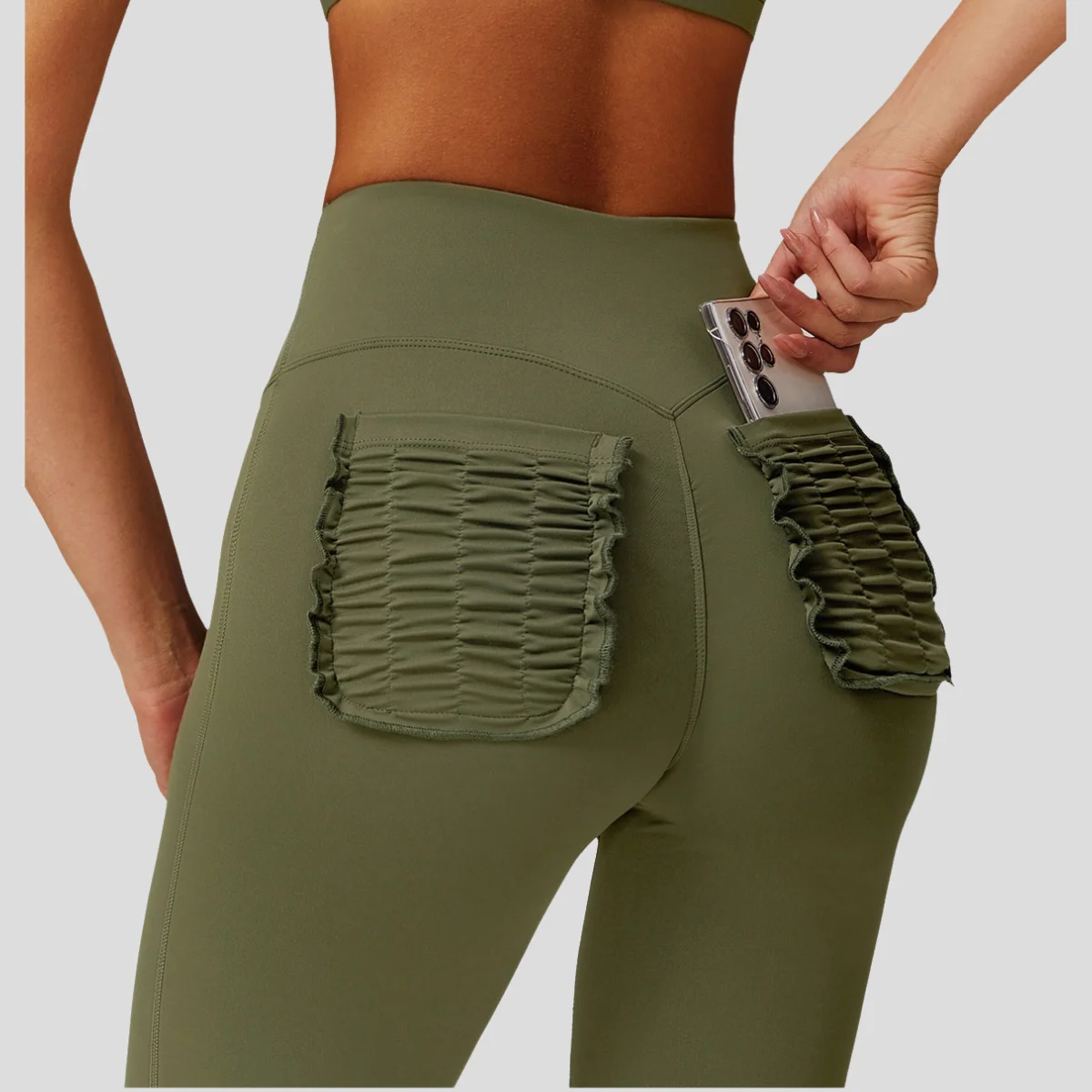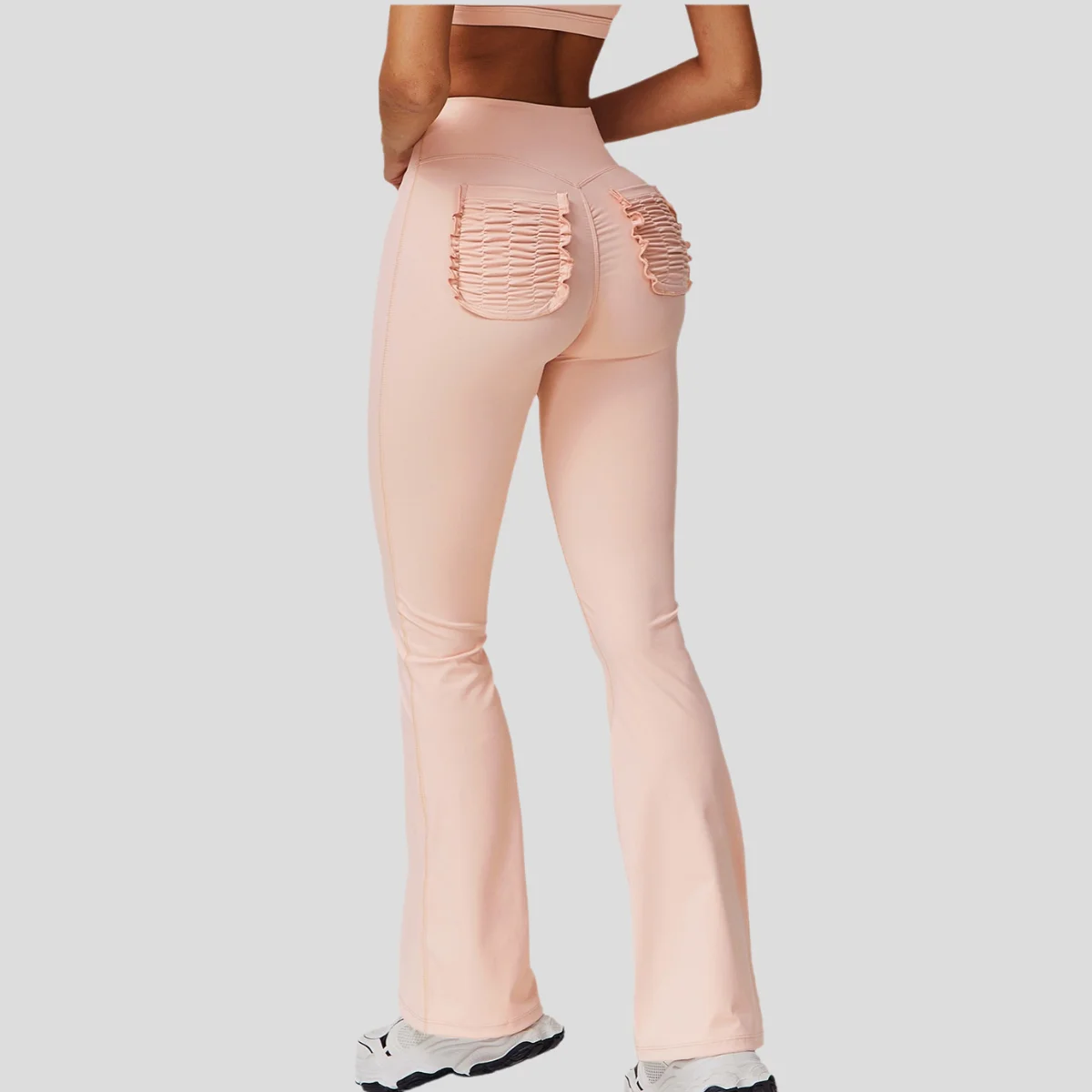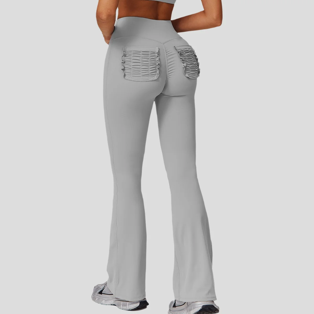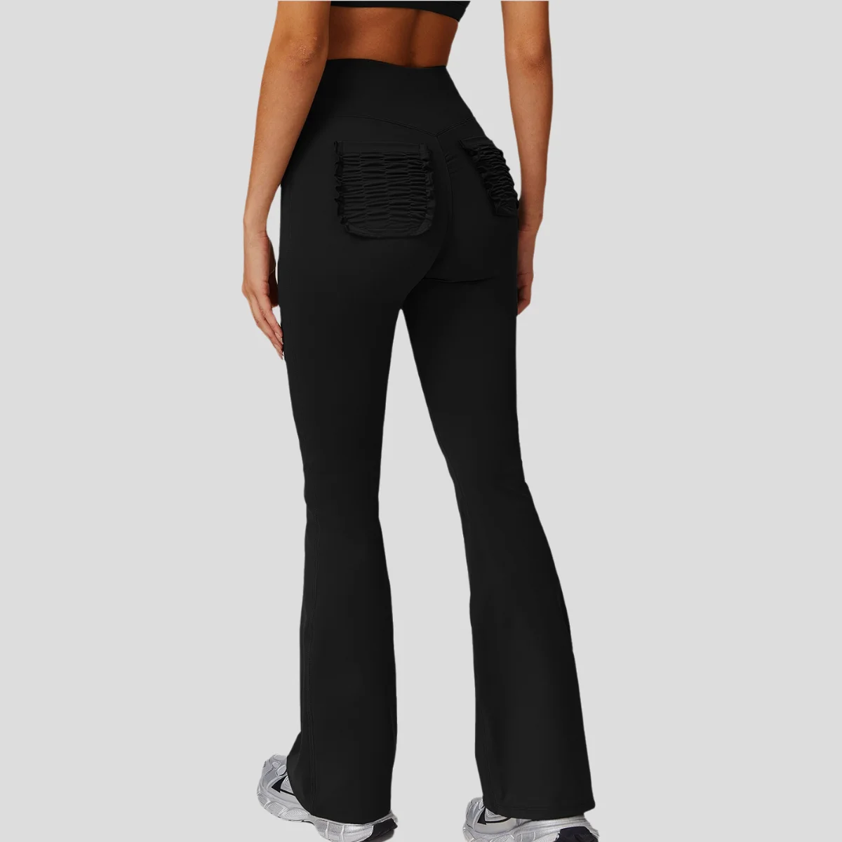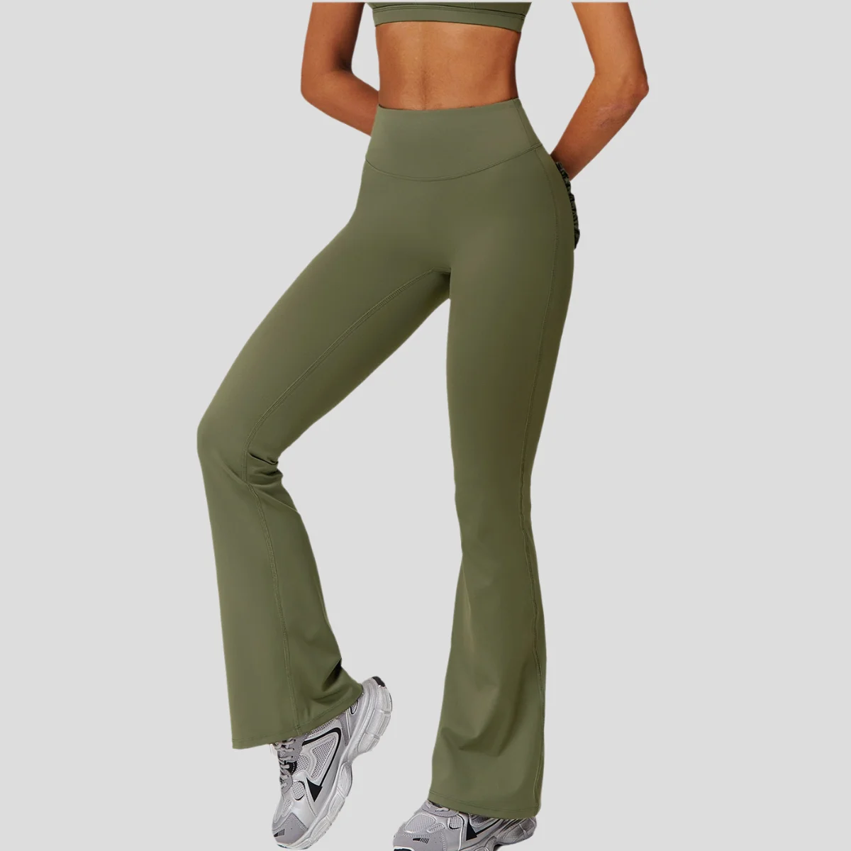 YISHENHON Recyclable Fabric Quick Dry Yoga V Waist Gym Leggings Running Workout Wide Leg Pants Flare Woman Sport Pants