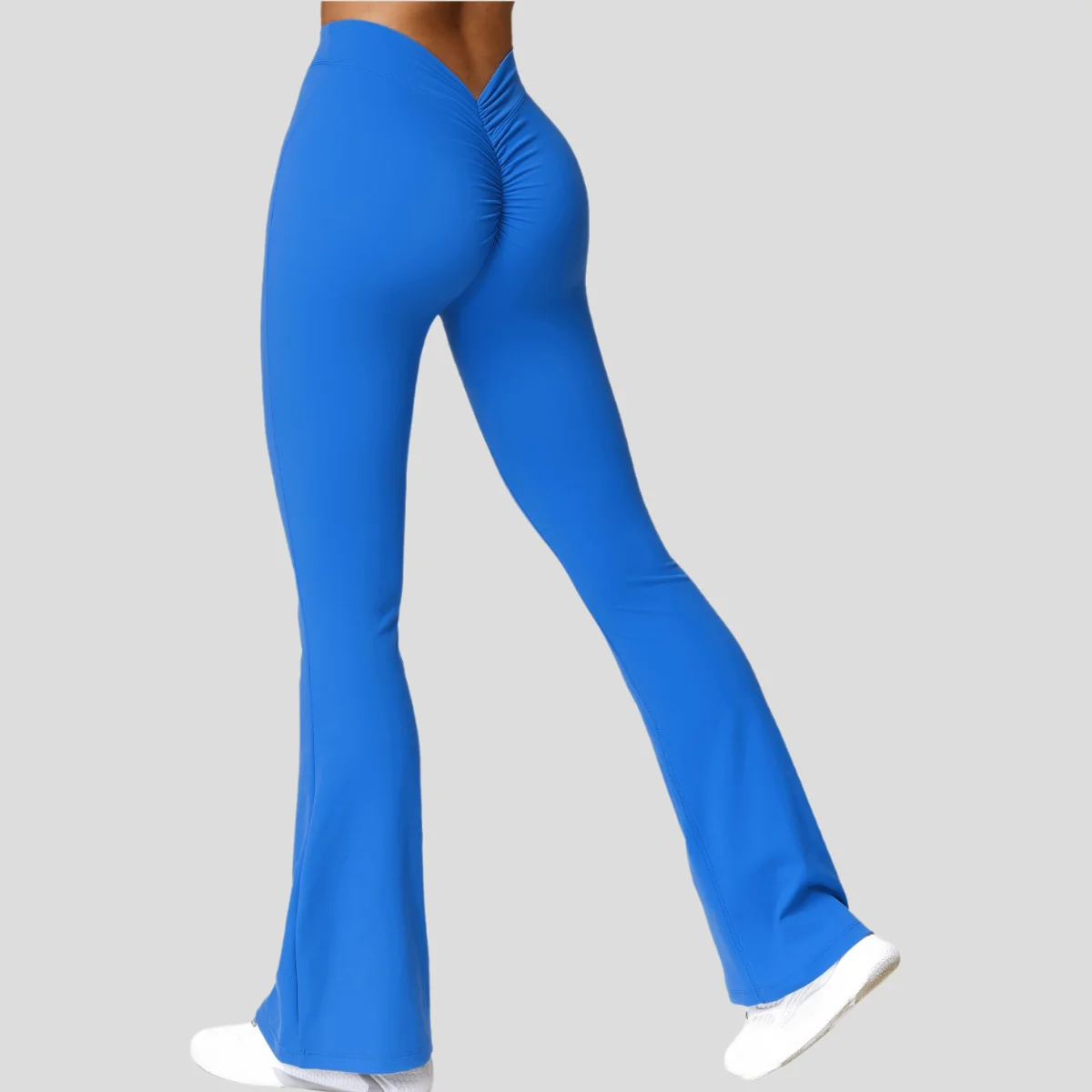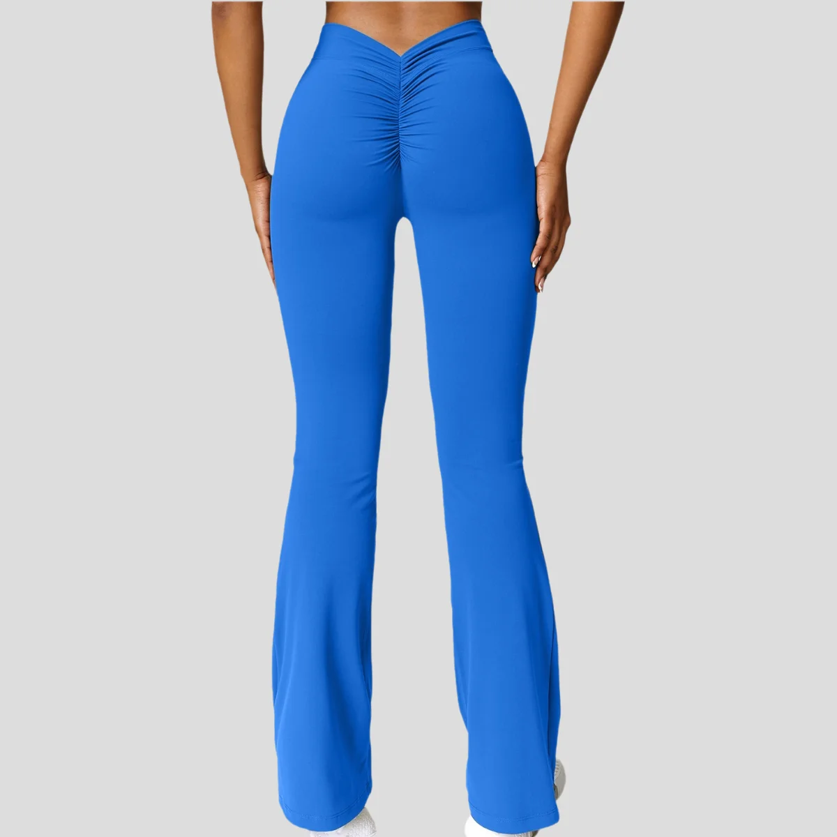 High Waist Yoga Pants with V-Design Soft Four-Dimensional Elastic Hip Lift Quick Dry Wide Leg Solid Pattern women's gym wear