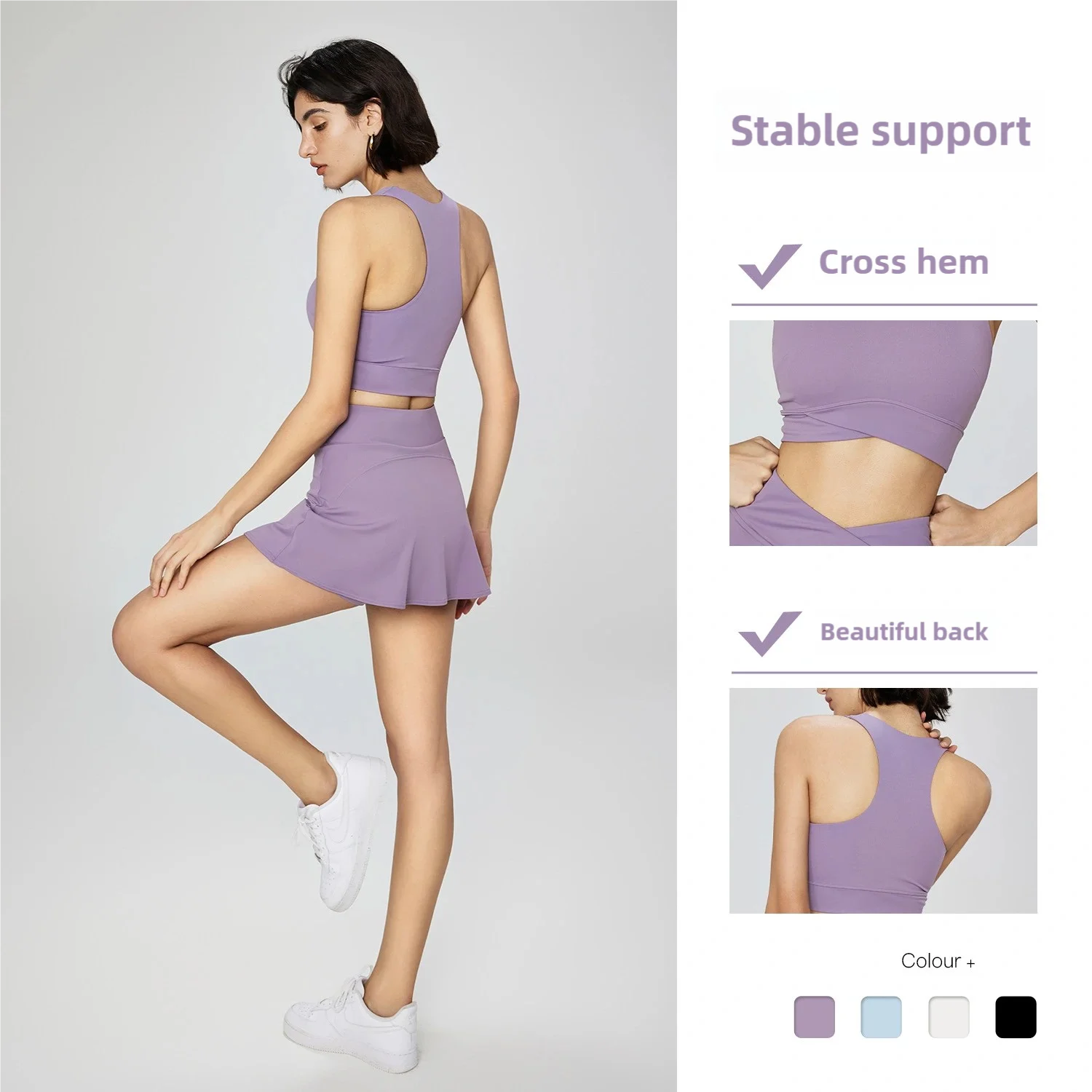 YISHENHON Summer Ladies Custom Logo Sport Skirt High Quality Fitness Apparel Breathable Sport Running V Cross Tennis Skirts