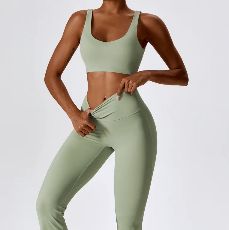 YISHENHON Recyclable Fabric Quick Dry Yoga V Waist Gym Leggings Running Workout Wide Leg Pants Flare Woman Sport Pants