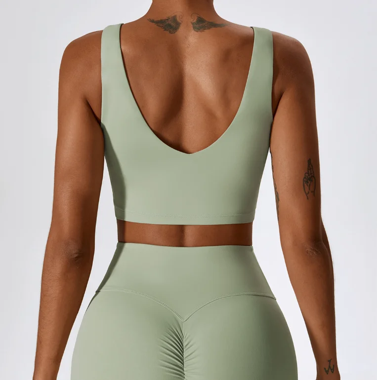 High Quality Hot Sale Hollow Backless Sports Bras Solid Color Fitness Running Tops Shockproof Yoga Breathable Naked Feeling