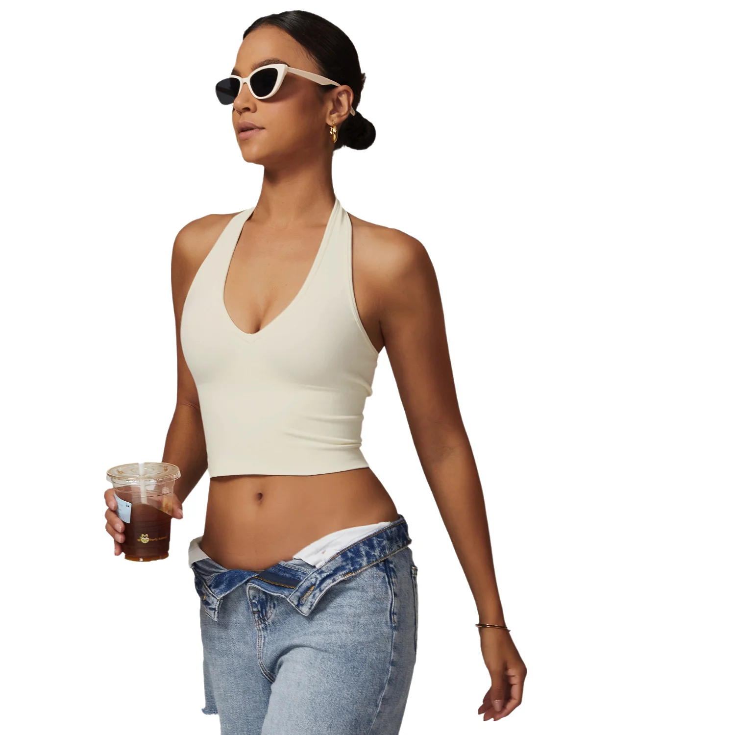 European American High Quality Women's Sports Bra Soft Comfortable for Running Sexy Backless Design Naked Feeling Breathable