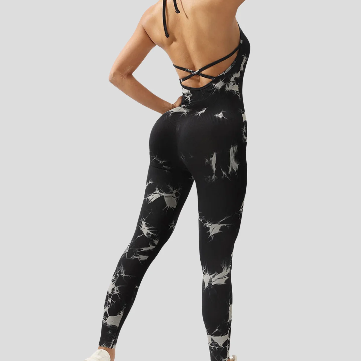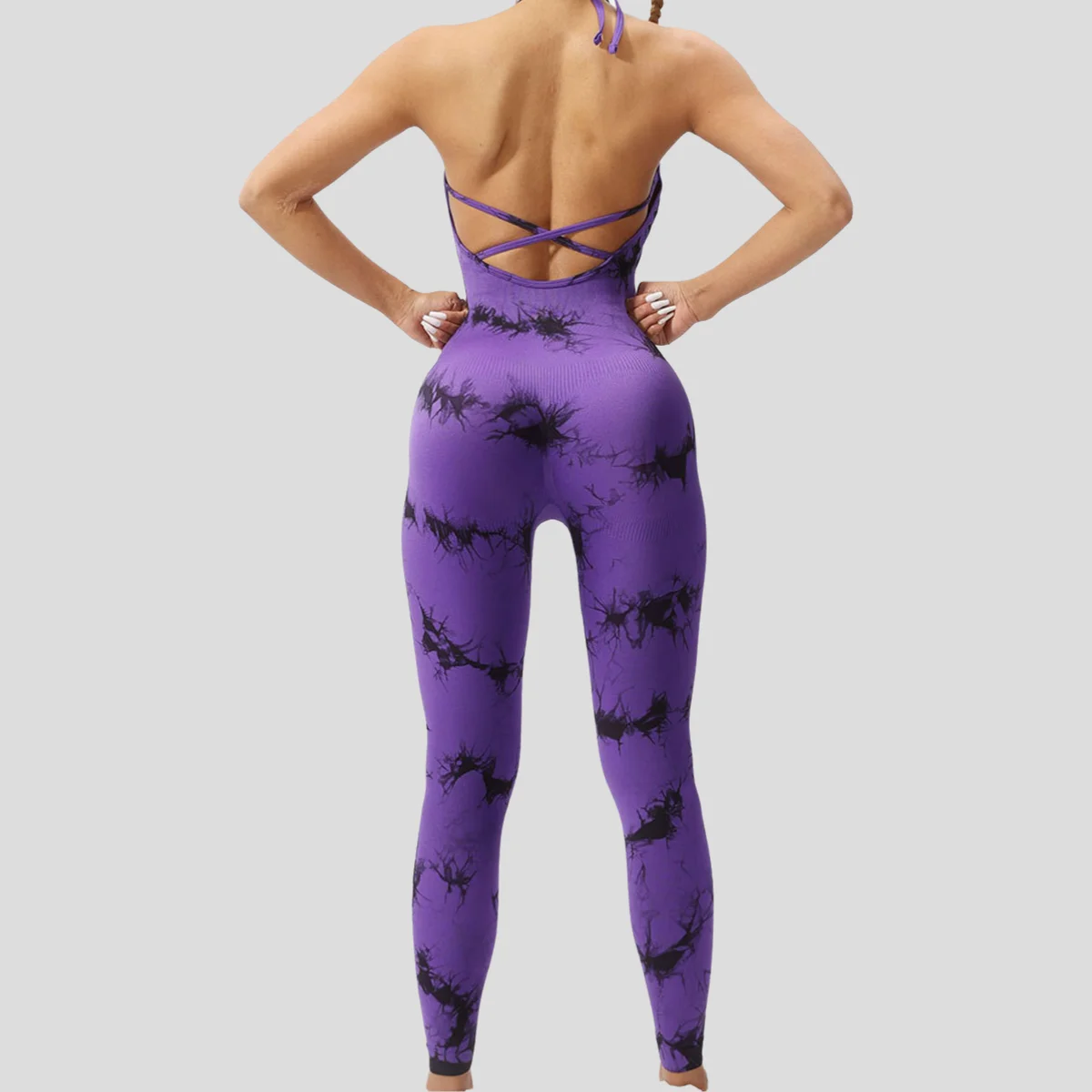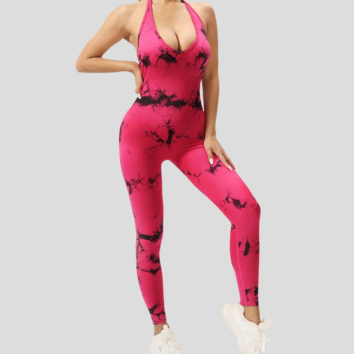 High Quality Slim-Fit Elastic Exercise Yoga Bodysuit Quick-Drying Seamless One-Piece Fitness Jumpsuit with Tie Dye Design