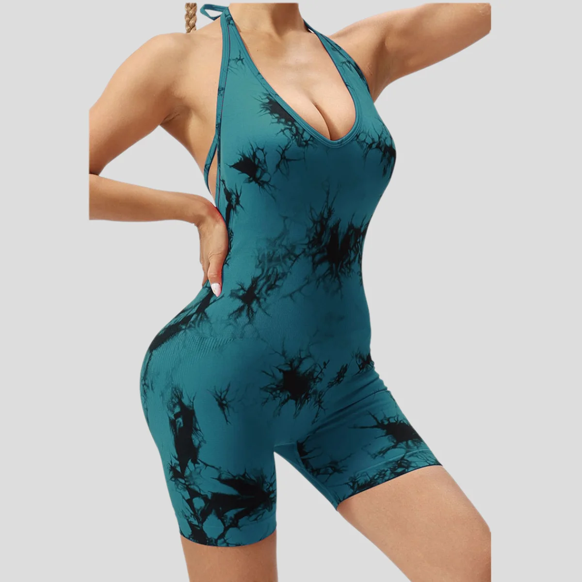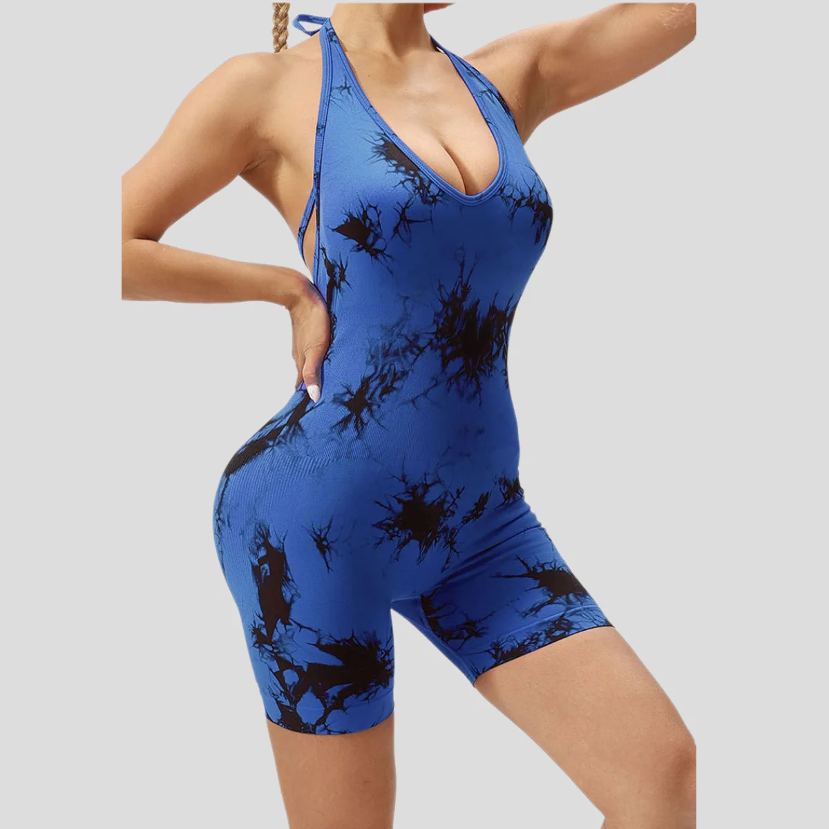 2026 New Tie-Dye One-Piece Yoga Sports Bodysuit Quick-Drying Fitness Jumpsuit with Hollow-out Back Sports Bodysuit & Jumpsuit
