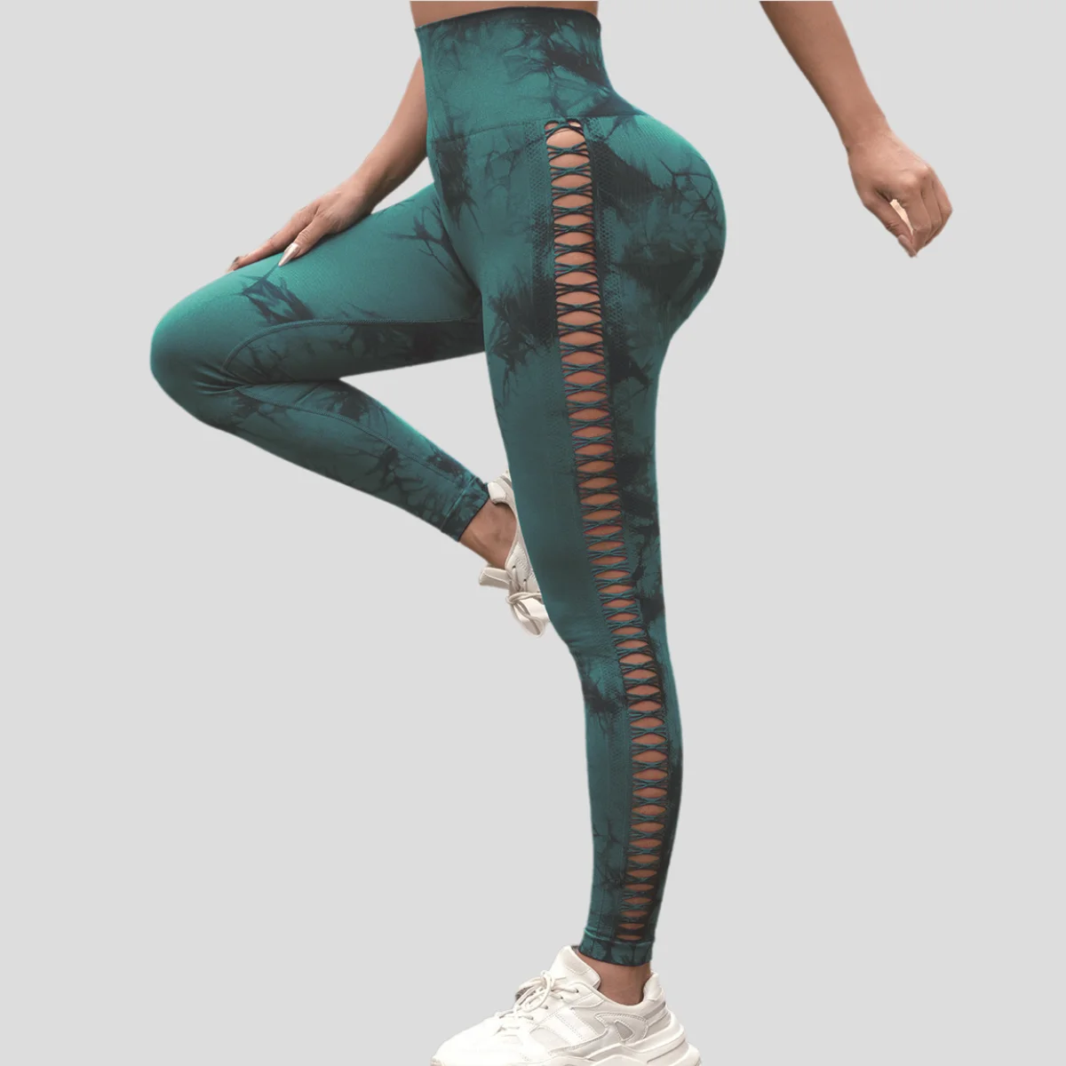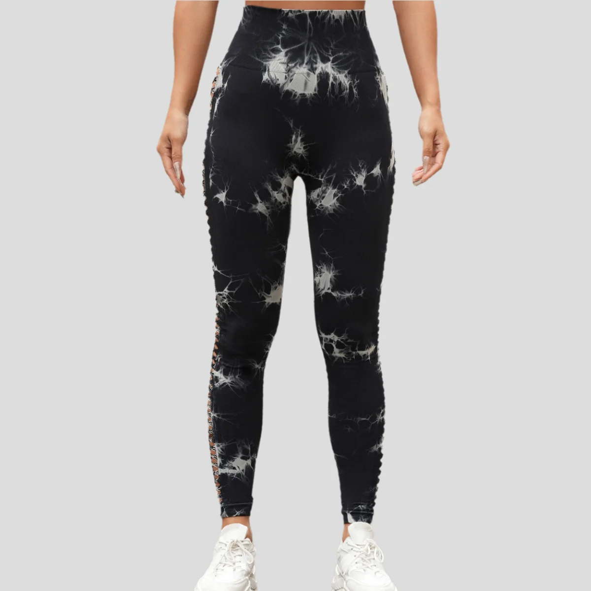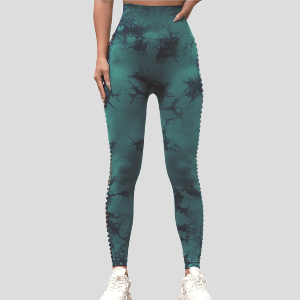 New Side Hollowed-out Tie Dye Yoga Pants High Waist Seamless Hip Lift Tight Exercise Yoga Pants