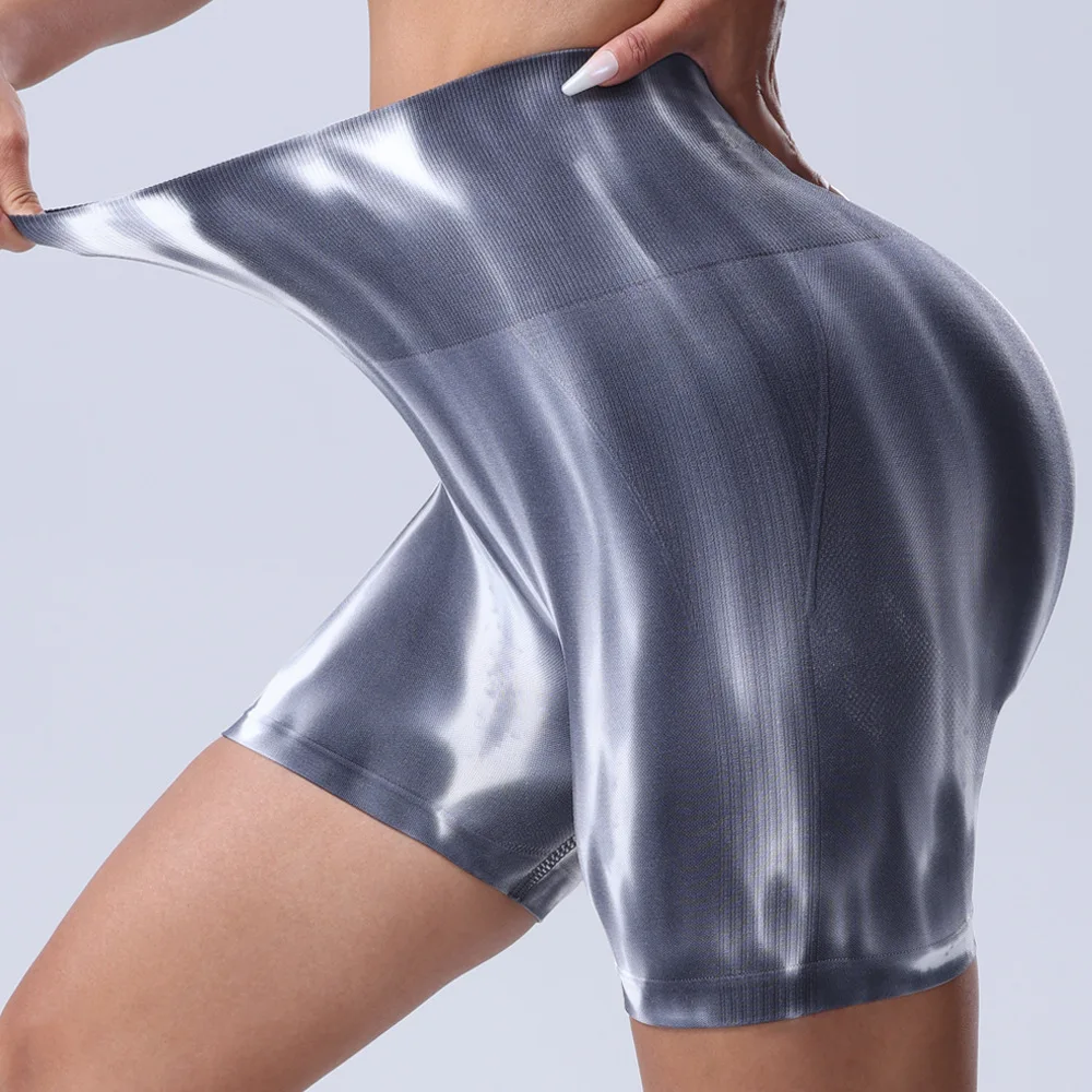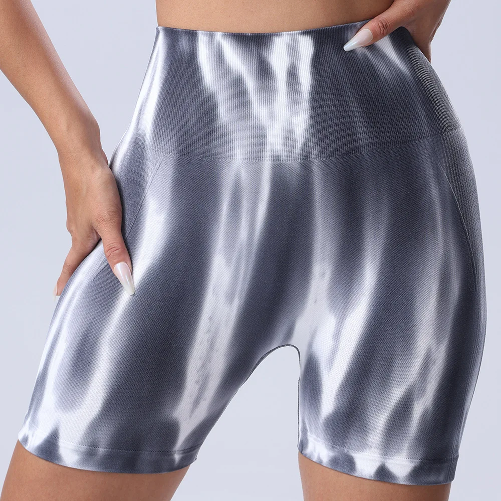 Women's High Quality Seamless Tie Dye Color Yoga Pants High Waist and Hip Lift Gradient Exercise Fitness Shorts