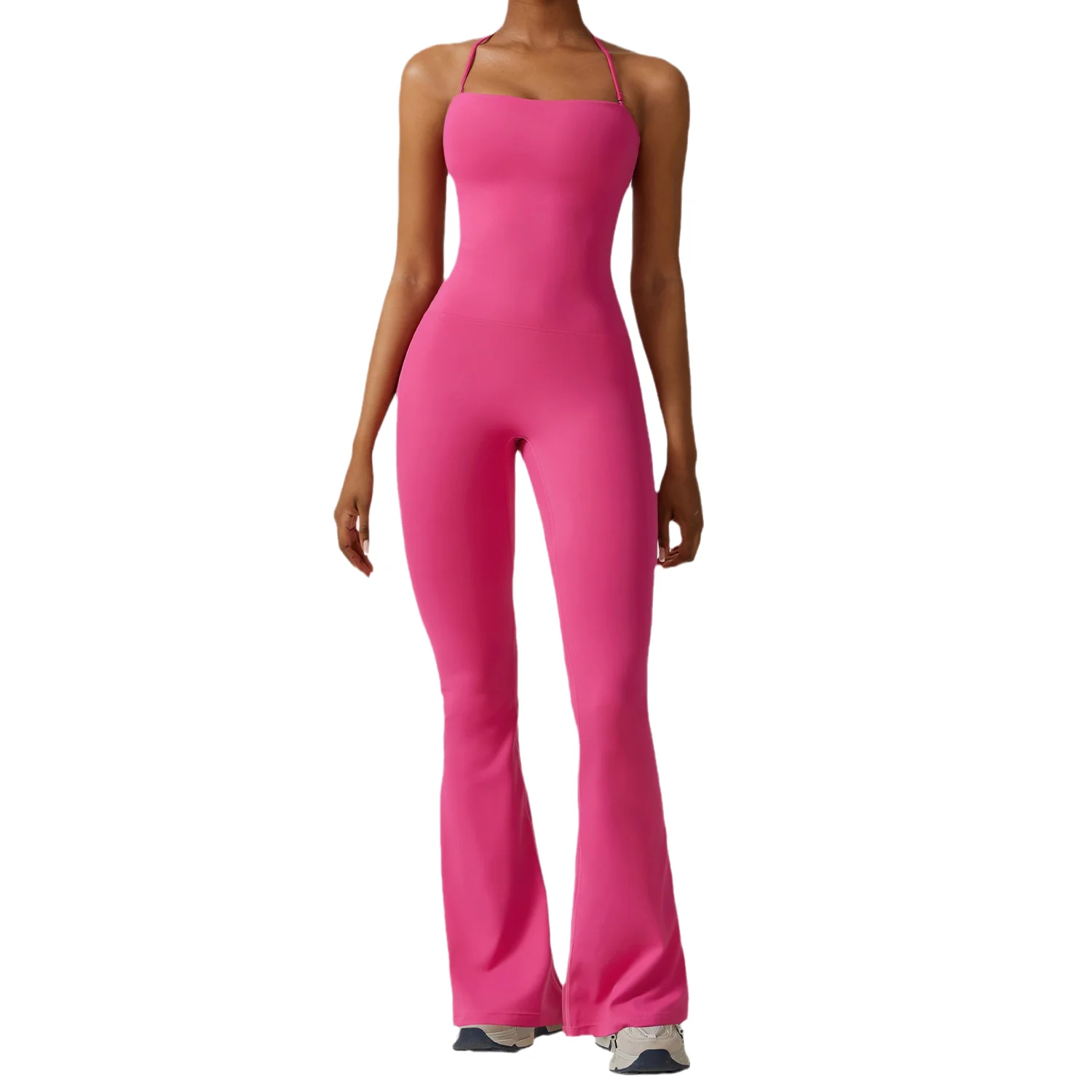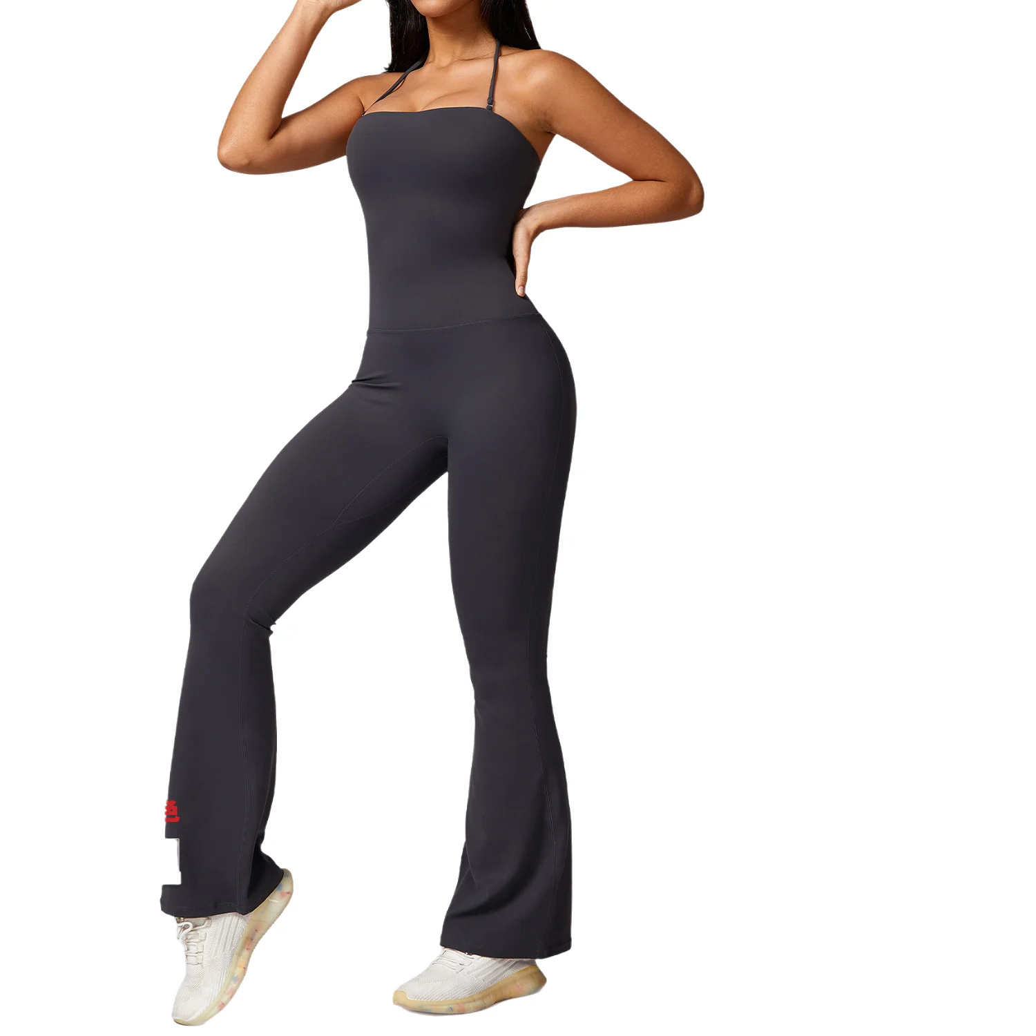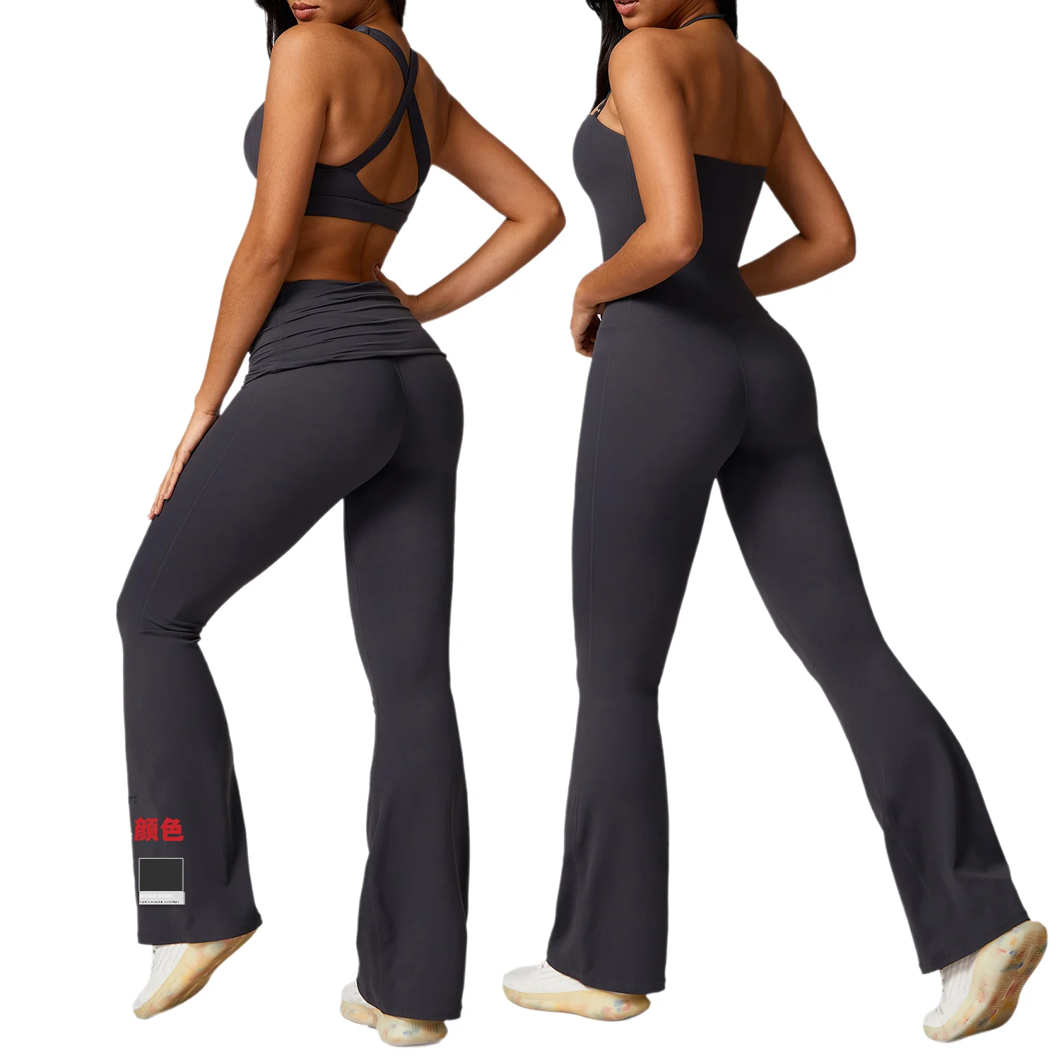 Women's Active Yoga Jumpsuit 2-Wear Beauty Back Flared Legging with Logo Sports Bodysuit for Gym Fitness Dance Workouts