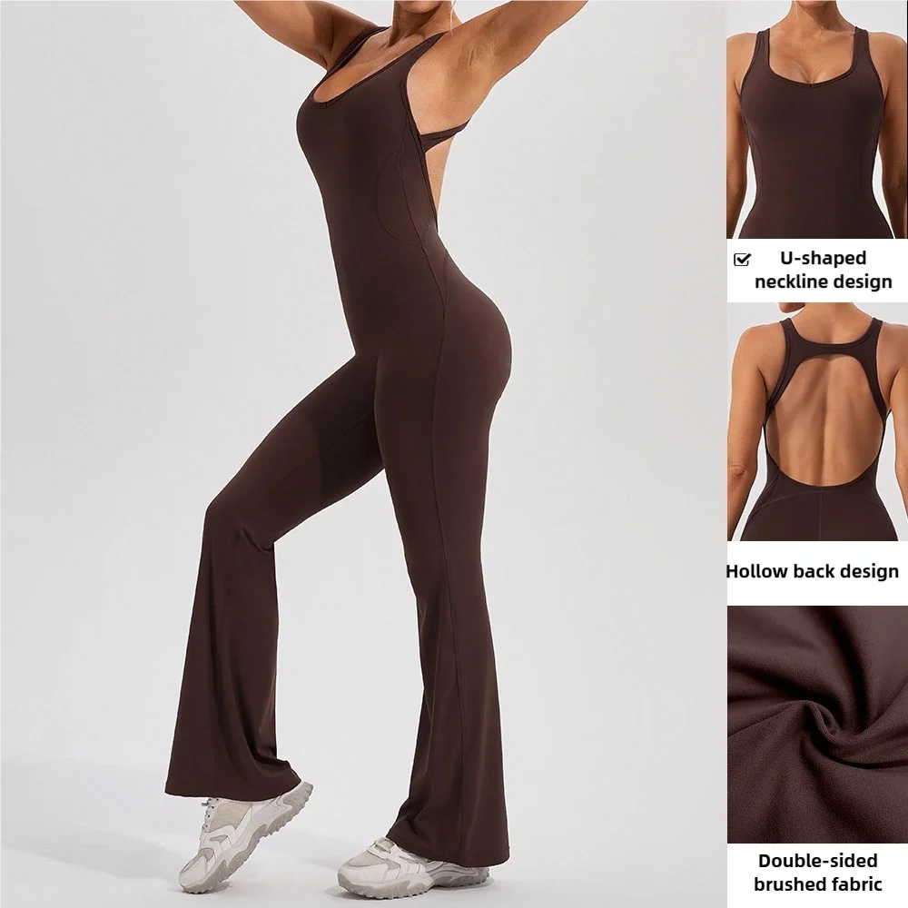 New Women'S Hollow-Out Yoga Sport Jumpsuit Custom Logo Printing Beautiful Back Tight Fitness Suit Pilates Yoga Dress