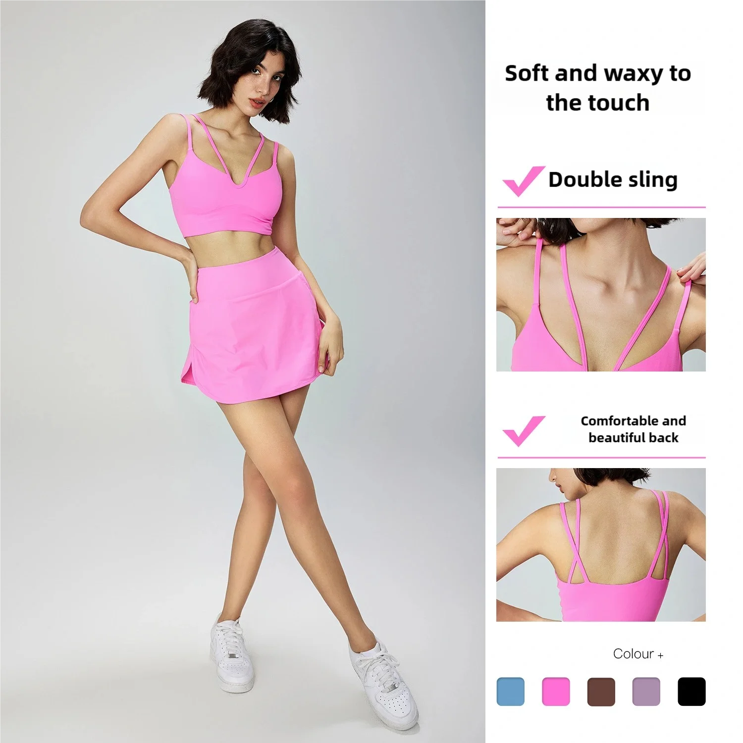 YISHENHON Summer Ladies Custom Logo Sport Skirt High Quality Fitness Apparel Breathable Sport Running V Cross Tennis Skirts