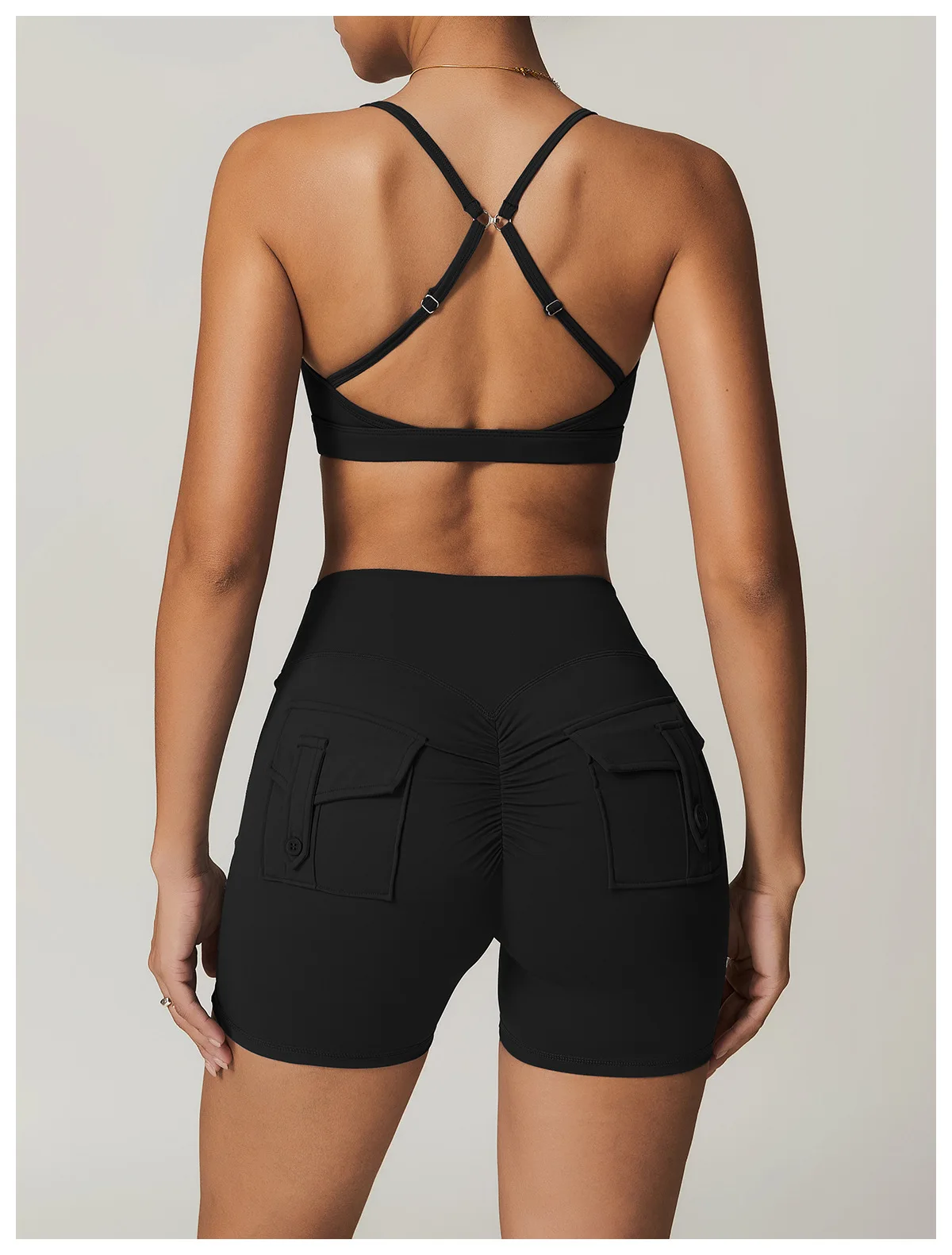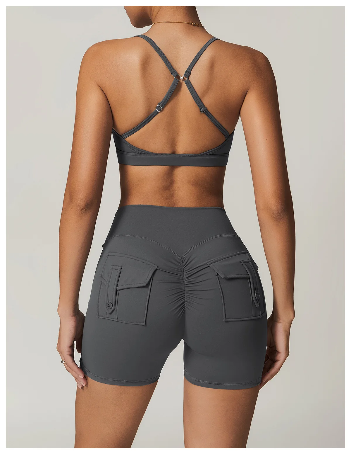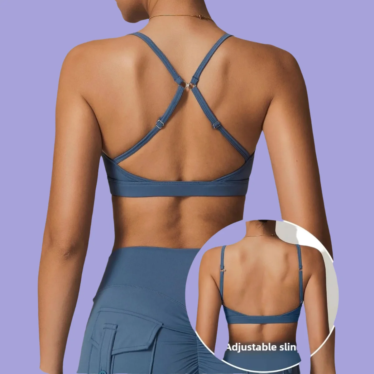 Beautiful Hollow Back Design Adjustable Cross Straps Sports Bra Yoga Vest Strap Halter Top Breathable Bra