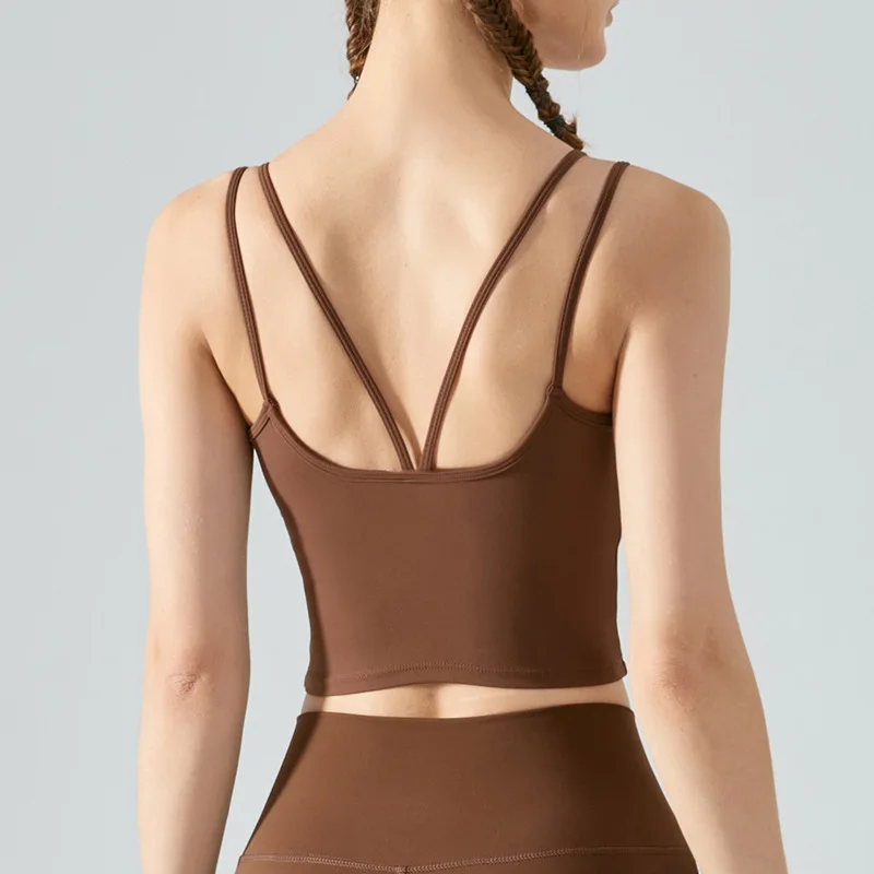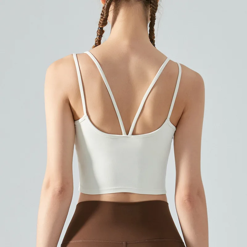 High Quality Seamless Cross Yoga Fitness Vest Beautiful Back Workout Top Solid Color Breathable Sports Halter Top Chest Pad