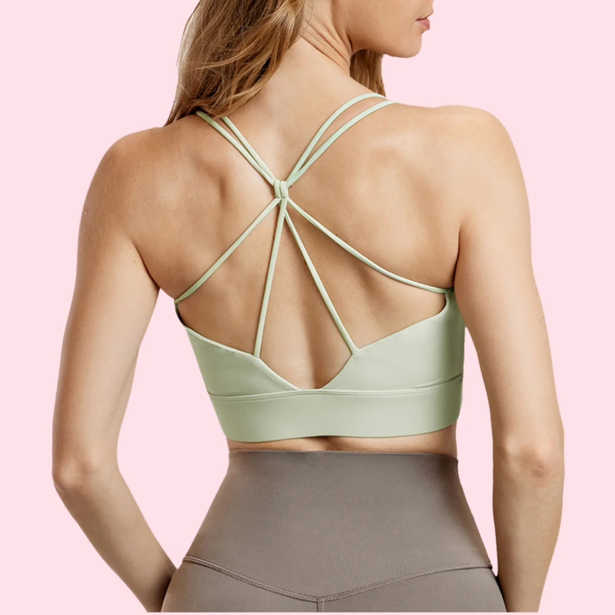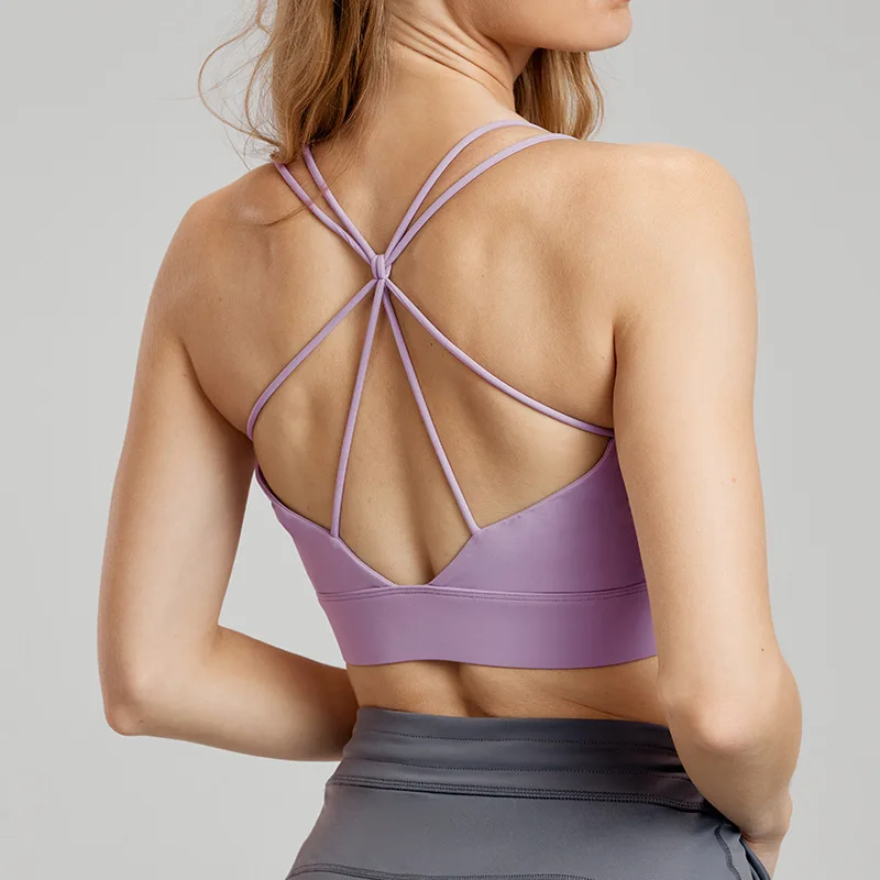 High Quality Quick Dry Sports Bra Breathable Cross Strap Top with Fixed Pads Solid Color for Running Fitness