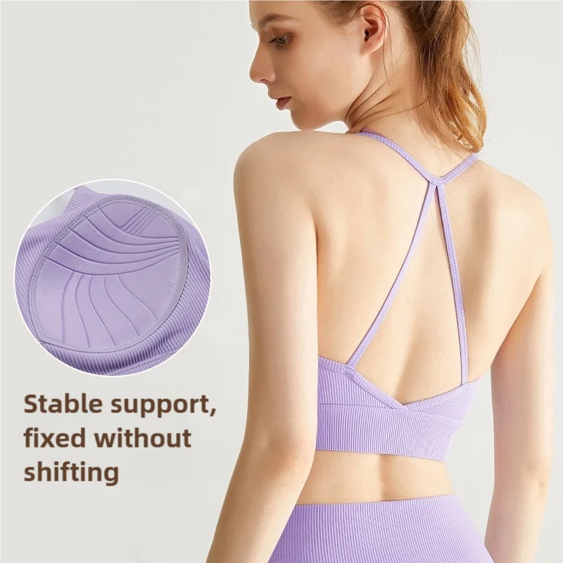 Moderate Intensity Ribbing Soft Cross Strap Sports Running Top Quick-Drying Solid Color Training Bra with Breathable Fixed Pads